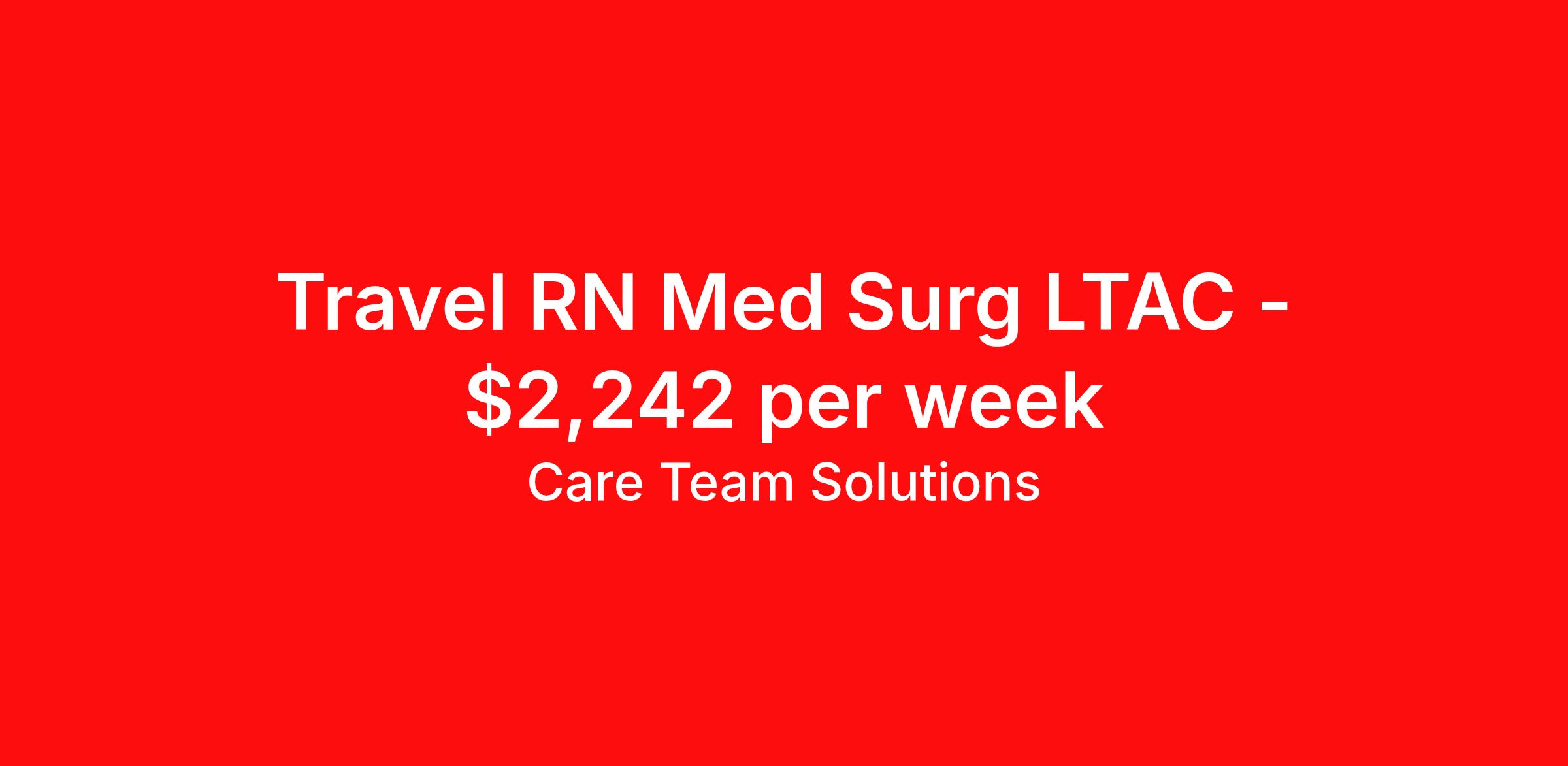 Care Team Solutions is seeking a travel nurse RN Med Surg for a travel nursing job in Peoria, Illinois. Job Description & Requirements Specialty: Med Surg Discipline: RN Start Date: 04/13/2026 Duration: 13 weeks 36 hours per week Shift: 12 hours Employment Type: Travel Registered Nurse must have 2 years of recent experience in particular specialty Details: Must Have 2 Years of recent Medical-Surgical experience. Specialty: Medical-Surgical Discipline: Registered Nurse Start Date: 2026-04-13 Duration: 13 Weeks Shift: 12 Hours Overnight shift. Hours Per Week: 36 Hours Employment Type: Contract Gross Weekly Pay: $2241.81 Six things that won’t happen if you apply to this job: You won’t have to guess what the downsides are. We’ll tell you up front. You won’t show up on day 1 and find out this is not what you signed up for. We won't leave your phone call ringing when it's inconvenient. Business hours for you are business hours for us. You won’t get shuffled to some customer service rep when a problem pops up. If we screw up something in securing your placement, we'll own it. That means it's on us to make it right. You won’t figure out your credentials alone. Our credentialing experts will walk you through it step by step. We've talked to thousands of travel nurses like you. We know you want good pay. You want to choose when you work. But the one thing nurse after nurse has said they want and don't have is someone in their corner. There's a lot in this business that’s messed up. We’re trying to be the people that fix it. You and every nurse with the guts to travel deserve it. We've worked hard for you to enjoy some one-of-a-kind benefits you'll not likely find anywhere else, because they benefit you more than they benefit us: Our early pay program Student loan reimbursement Free well-being tele-visits with a psychologist Care Team Solutions Job ID 587072. Pay package is based on 12 hour shifts and 36 hours per week (subject to confirmation) with tax-free stipend amount to be determined. Posted job title: Registered Nurse-Medical-Surgical About Care Team Solutions Two brothers who give an enormous damn. We're Justin and Kyle. Neither of us are nurses. It doesn’t take a nurse to see that the way travel nurses are treated sucks. Nursing is already hard enough. Travel nursing takes serious guts. You get the toughest assignments in places you’ve never been. Which can be fun, but it’s also stressful. You’re in your element but outside of your hometown. You can be a stranger on the team. If anyone deserves someone in their corner, it’s you. But that’s not how most agencies operate. Which is why travel nurses hate working with them. We got into this business because we saw bucket-loads of nurses moving through the "churn and burn" travel machinery. We absolutely hate that. You'll do your best work when you have the placements you want and feel fully supported in your work. We pay our people well because we want them to treat you well. Our recruiters are amazing (we picked each of them ourselves), but if you've got a problem too big for them, they can come straight to us. We work like ten feet away. The "Churners and Burners" promise you the same benefits. They might as well copy/paste them from each other. We have them too: 401k, holiday pay, healthcare, dental, travel reimbursement, etc But we've worked hard for you to enjoy some one-of-a-kind benefits you'll not likely find anywhere else, because they benefit you more than they benefit us: Our early pay program Student loan reimbursement Free well-being tele-visits with a psychologist Benefits Weekly pay Holiday Pay Guaranteed Hours 401k retirement plan Wellness and fitness programs Referral bonus Medical benefits Dental benefits Vision benefits School loan reimbursement