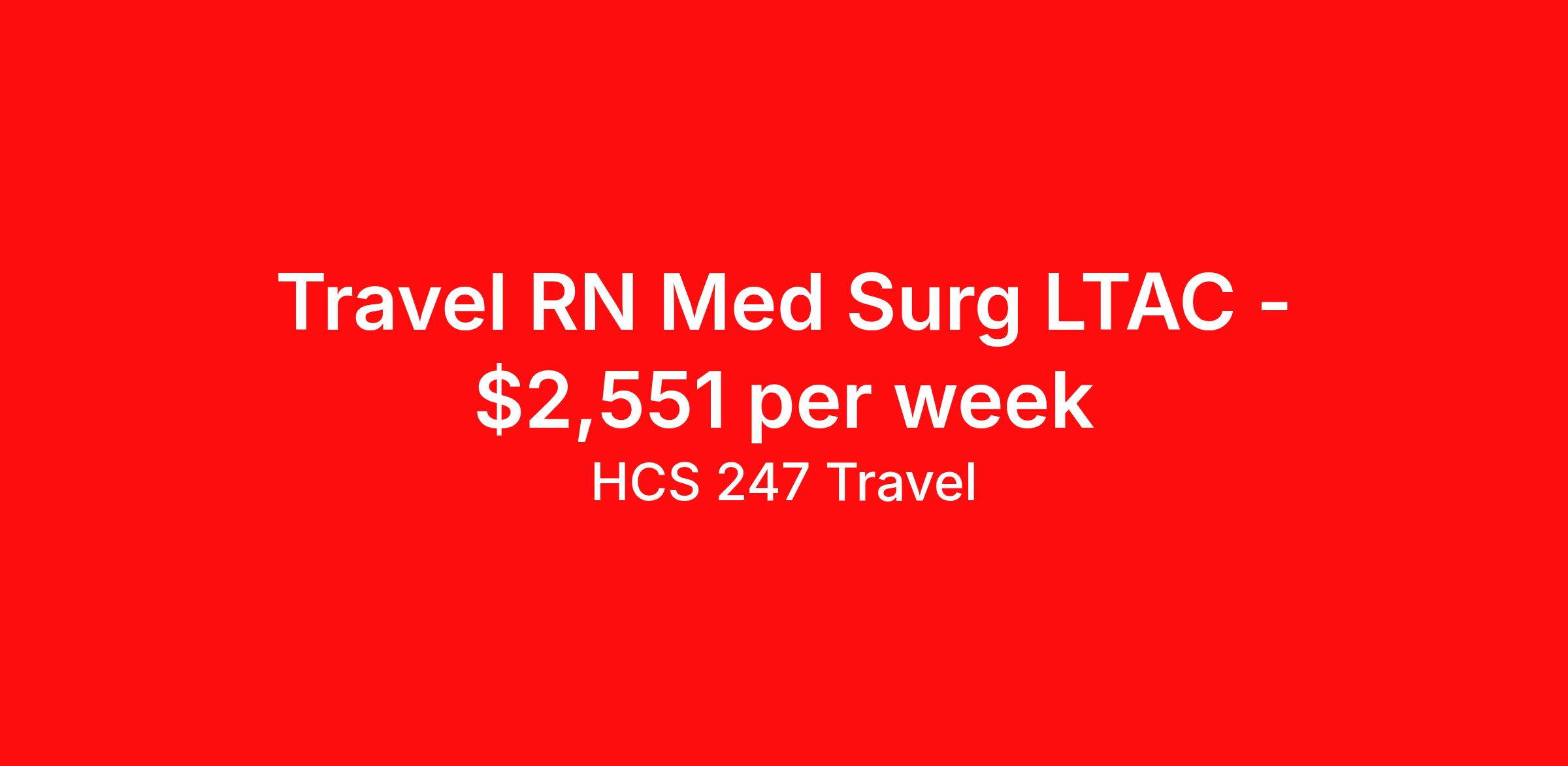 HCS 247 Travel is seeking a travel nurse RN Med Surg for a travel nursing job in Peoria, Illinois. Job Description & Requirements Specialty: Med Surg Discipline: RN Start Date: 04/13/2026 Duration: 13 weeks 36 hours per week Shift: 12 hours, nights Employment Type: Travel HCS 247 Travel Job ID 62511155. Pay package is based on 12 hour shifts and 36 hours per week (subject to confirmation) with tax-free stipend amount to be determined. About HCS 247 Travel HCS 24/7 is a national healthcare staffing organization specializing in the placement of Registered Nurses and Allied health professionals across acute care and other clinical settings. We support travel assignments, local short- and long-term contracts, per diem, temp-to-perm, and direct hire opportunities nationwide. Our clinical coverage includes Registered Nurse specialties such as ER, ICU, Med-Surg, Telemetry, Step-Down, OR, PACU, L&D, Mother/Baby, NICU, Cath Lab, Endoscopy, and more along with a full range of allied and imaging professionals, including Respiratory Therapists, Surgical Technicians, X-Ray Techs, CT Techs, MRI Techs, Interventional Radiology (IR) Techs, Cath Lab Techs, Ultrasound/Sonographers, Mammography Techs, and Nuclear Medicine Techs. With competitive compensation and benefits, consistent opportunities, and a clinician-first approach backed by top-rated customer service, HCS 24/7 delivers a seamless experience from initial application through assignment completion. Benefits Holiday Pay Guaranteed Hours Continuing Education Mileage reimbursement Referral bonus Medical benefits Dental benefits Vision benefits License and certification reimbursement Life insurance Benefits start day 1 Weekly pay
