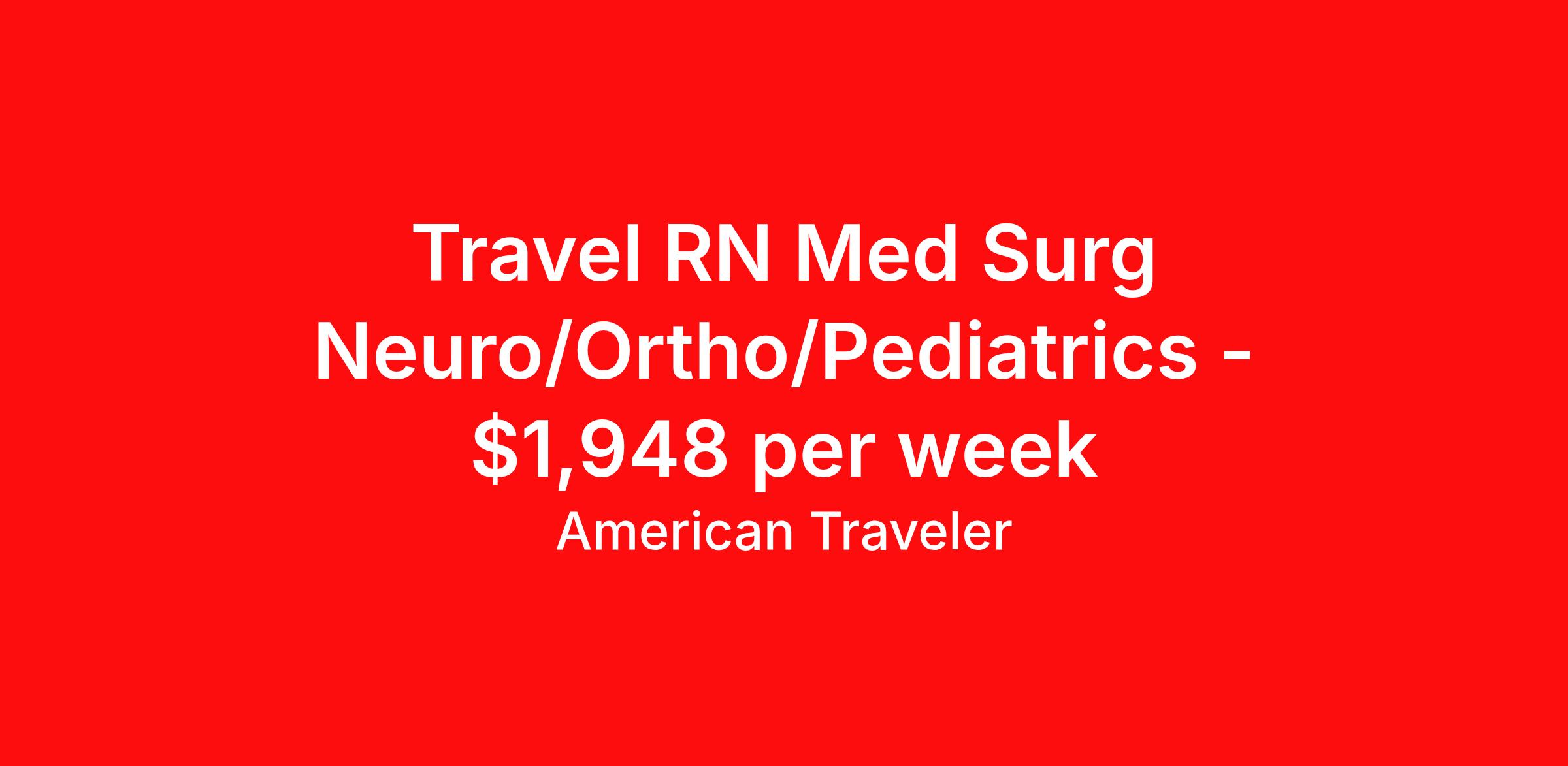 American Traveler is seeking a travel nurse RN Med Surg for a travel nursing job in Marquette, Michigan. Job Description & Requirements Specialty: Med Surg Discipline: RN Start Date: 03/22/2026 Duration: 13 weeks 36 hours per week Shift: 12 hours, nights Employment Type: Travel Assignment Overview Shift: Nights, 3x12hrs Hours: 36 hrs/wk Start Date: Mar 22, 2026 Length: 13 weeks Openings: 1 Description American Traveler is seeking an experienced RN for a Med/Surg (Neuro/Ortho/Peds) night shift travel position in Michigan, requiring 2 years of experience and an active MI RN license. Details Medical/Surgical Combination unit in a hospital setting Patient population includes neurological, orthopedic, and pediatric cases Night shift schedule: 7:00 PM – 7:00 AM 13-week contract Requirements Active MI RN license required AHA certifications required Minimum 2 years of RN experience required Social Security number required for consideration Date of birth required for consideration Additional Information Candidates must reside more than 60 miles from the facility to be eligible Candidates who have worked as permanent staff at any LifePoint facility within the last 12 months are not eligible Cannot be employed full-time elsewhere during the assignment American Traveler Job ID P-685423. Pay package is based on 12 hour shifts and 36 hours per week (subject to confirmation) with tax-free stipend amount to be determined. Posted job title: Travel RN - Med/Surg About American Traveler With over 25 years of experience, American Traveler has established a reputation for outstanding customer service. Our team ensures a smooth, worry-free experience for those starting on or expanding their travel nursing and allied careers. With thousands of travel nursing and allied jobs nationwide, our attentive and approachable recruiters find positions that align perfectly with your career aspirations and personal requirements. American Traveler offers exceptional benefits, including premium medical, dental, vision and life insurance beginning day one of your assignment, generous 401(k) match, substantial housing stipends, and more. Additionally, with 24/7 support and access to our in-house clinicians, you are assured confidence and comfort throughout your assignment. With our team behind you, you can relax and enjoy a rewarding travel career.