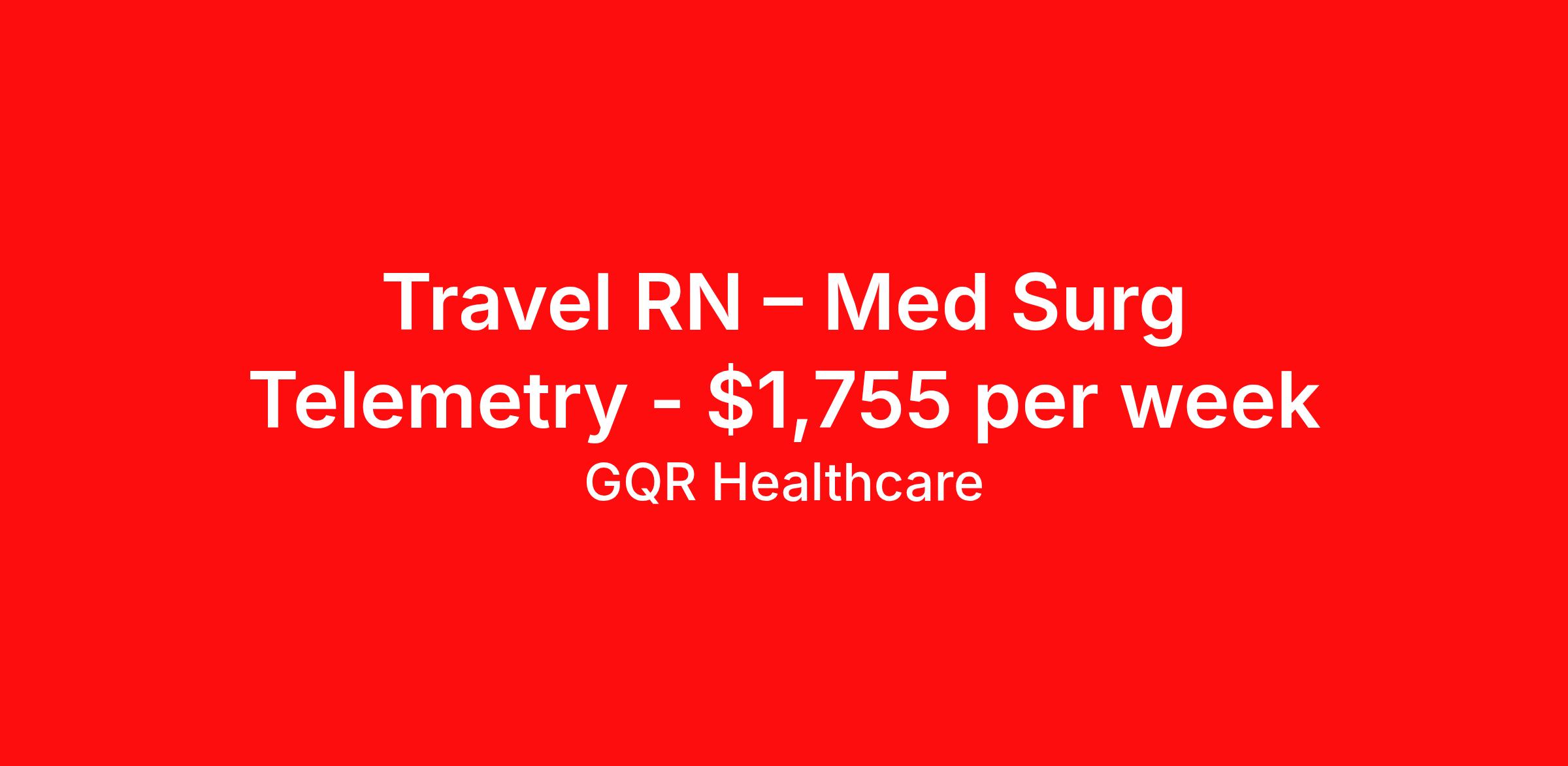 GQR Healthcare is seeking a travel nurse RN Med Surg / Telemetry for a travel nursing job in Gallatin, Tennessee. Job Description & Requirements Specialty: Med Surg / Telemetry Discipline: RN Start Date: ASAP Duration: 13 weeks 36 hours per week Shift: 12 hours, days Employment Type: Travel GQR Healthcare is representing a well-known health system seeking experienced Medical/Surgical/Telemetry providers to add to their team. If you are passionate about providing exceptional care and looking to explore a rewarding career opportunity, we'd love to hear from you! Apply now, and a dedicated GQR consultant will connect with you to discuss the role, answer your questions, and guide you through the process. About GQR Healthcare: At GQR Healthcare, we are committed to supporting healthcare professionals at every stage of their careers. When you partner with us, you gain access to a wide range of benefits and support, including: Day 1 Benefits: Enjoy comprehensive healthcare coverage, including medical, dental, and vision plans, starting on your first day. Guaranteed Hours: We provide contract stability by offering guaranteed hours, ensuring you have the predictability you need. Continuing Education & Development: We invest in your growth by offering opportunities for professional development and ongoing education. 24/7 Consultant Support: Our dedicated consultants are available around the clock to assist with any needs or questions you have. Seamless Placement Process: We handle all the details, from onboarding to interviews, so you can focus on what you do best - providing exceptional patient care. Partnering with GQR means more than just finding your next job - it's about building a meaningful career with a team that truly supports your goals. GQR Job ID 256755. Pay package is based on 12 hour shifts and 36 hours per week (subject to confirmation) with tax-free stipend amount to be determined. Posted job title: Registered Nurse (RN) About GQR Healthcare GQR’s Healthcare team specializes in connecting experts within the industry to highly skilled healthcare professionals across the US market. In the competitive healthcare market, we recognize that the industry’s common goals of improved quality of care and patient outcomes are wholly reliant upon the professionals directly supporting these initiatives. Leveraging our extensive candidate network, we deliver continuity of care for the communities our partners serve to ensure the patient experience is of the highest quality. Through deep market specialization and a unique approach to talent acquisition, GQR Healthcare provides an unparalleled and personalized experience across all medical specialties in nursing and within diverse healthcare platforms across the industry.