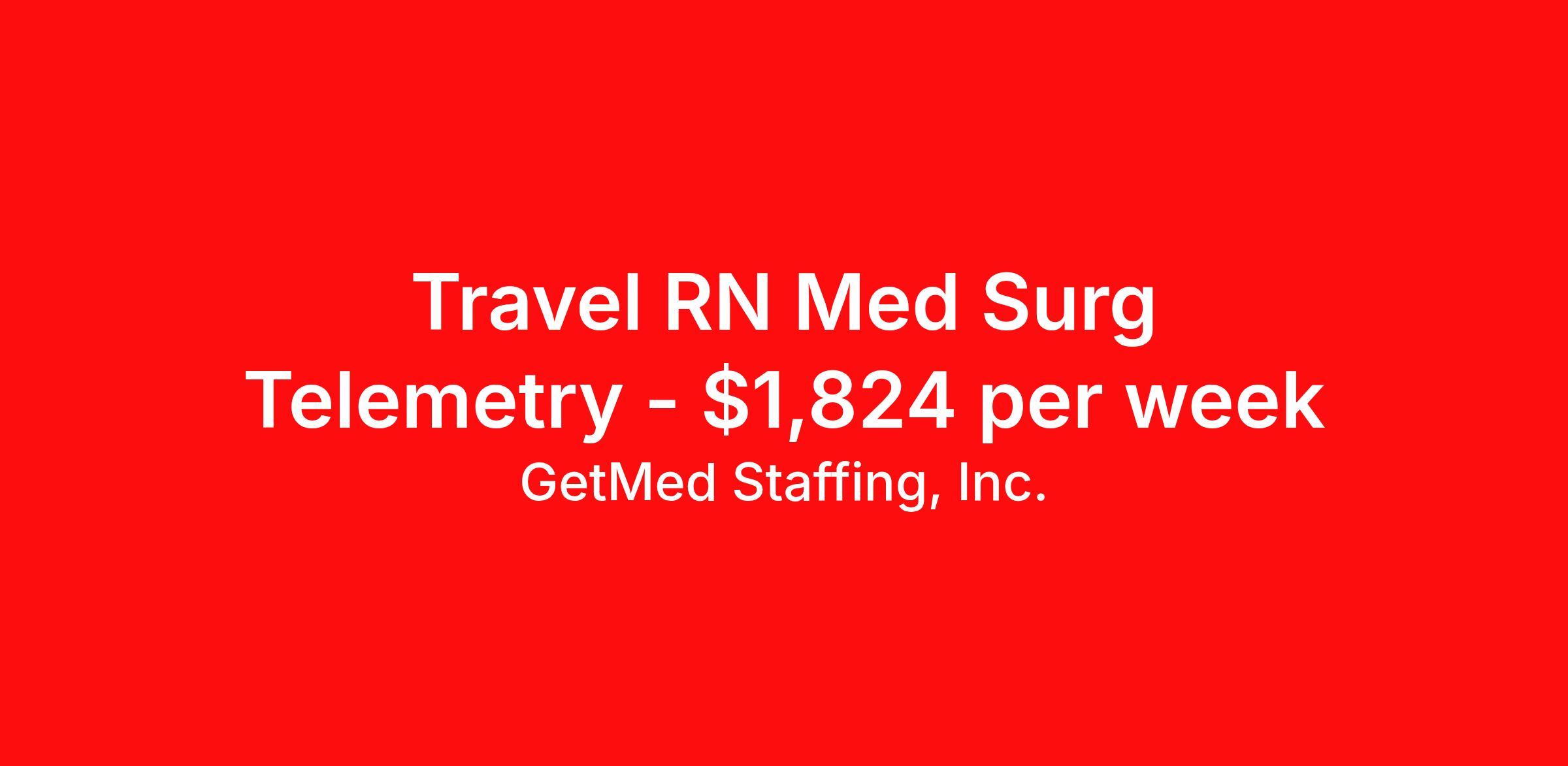 GetMed Staffing, Inc. is seeking a travel nurse RN Telemetry Med Surg for a travel nursing job in Ottumwa, Iowa. Job Description & Requirements Specialty: Telemetry Discipline: RN Start Date: 03/30/2026 Duration: 13 weeks 36 hours per week Shift: 12 hours, nights Employment Type: Travel GetMed Staffing is searching for a strong Telemetry RN to assist our traveler-friendly client. A minimum of 1-2 years of experience is required. Traveling with GetMed Staffing offers the unique opportunity to gain diverse experiences, both personally and professionally. Gain experience that matters. GetMed Staffing, Inc. Job ID 36115582. Pay package is based on 12 hour shifts and 36.0 hours per week (subject to confirmation) with tax-free stipend amount to be determined. Posted job title: RN:Telemetry,19:00:00-07:00:00 About GetMed Staffing, Inc. We are a diversity owned company, specializing in healthcare recruiting services. We truly understand how important a healthcare travelers' relationship is with their recruiter, as well as our relationship is with our healthcare facilities. We recognize that the needs of our healthcare travelers can vary, and therefore we provide the personalized touch necessary to ensure a successful travel assignment each and every time. Our healthcare facilities and clients benefit from us putting our healthcare travelers first. GetMed Staffing is excited to be a leader within the industry by focusing on providing healthcare travelers with more choices and possibilities as they plan for their next healthcare travel assignment. Benefits Life insurance Medical benefits Dental benefits Vision benefits 401k retirement plan