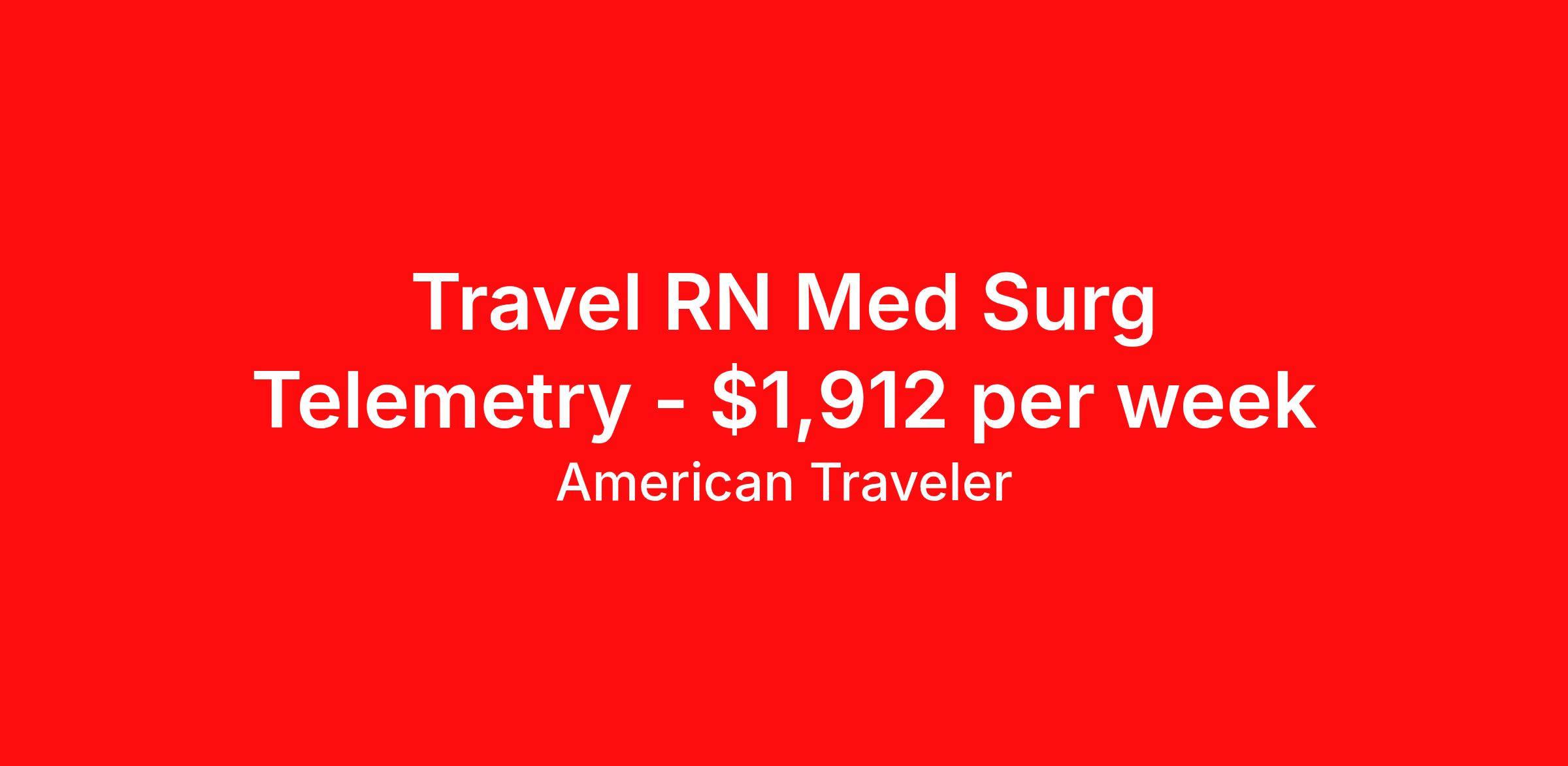 American Traveler is seeking a travel nurse RN Med Surg / Telemetry for a travel nursing job in Tuscaloosa, Alabama. Job Description & Requirements Specialty: Med Surg / Telemetry Discipline: RN Start Date: 03/30/2026 Duration: 13 weeks 36 hours per week Shift: 12 hours, nights Employment Type: Travel Assignment Overview Shift: Nights, 3x12hrs Hours: 36 hrs/wk Start Date: Mar 30, 2026 Length: 13 weeks Openings: 1 Description American Traveler is hiring a travel RN for a Med/Surg Telemetry Cardiac unit position in Tuscaloosa, AL, requiring at least 2 years of experience and an active AL or compact RN license. Details 42-bed Cardiac Medical/Telemetry unit (6 North) in a hospital setting Primary patient population includes cardiac patients presenting with chest pain, shortness of breath, palpitations, and cardiac arrhythmias Also cares for medical patients with pneumonia, GI issues, COPD, diabetes, and occasional stroke, as well as surgical patients Nurse-to-patient ratio of 1:6 Night shift, 7:00 PM – 7:00 AM Every other weekend required Holiday coverage required Floating to other units and hospitals is required Facility uses Meditech EMR (experience preferred but not required) 13-week contract Requirements Active AL or compact RN license required — no pending or temporary licenses accepted No prior disciplinary hits on license (past or current) AHA BLS or Red Cross BLS certification required Minimum 2 years of RN experience; candidates with 18 months may be considered if they have at least 1 year of recent experience in Med/Surg Telemetry Associate degree in nursing (ADN) required at minimum Current NURSYS verification required Active state or compact RN license must be on hand for consideration Two professional references from within the last year required for consideration Current driver's license required for consideration Full SSN required for consideration Additional Information Provide patient-centered cardiac telemetry and medical/surgical nursing care with a focus on optimal patient outcomes Team includes dedicated nursing and ancillary staff supporting specialized patient recovery Virtual orientation provided, including competency-based modules — no HealthStream modules required prior to start Candidates will be required to complete an online pre-test as part of the hiring process Solid navy scrubs required Local candidates are accepted at the same rates with no radius restrictions Timekeeping system: Centricity American Traveler Job ID P-678566. Pay package is based on 12 hour shifts and 36 hours per week (subject to confirmation) with tax-free stipend amount to be determined. Posted job title: Travel RN - Med/Surg Tele About American Traveler With over 25 years of experience, American Traveler has established a reputation for outstanding customer service. Our team ensures a smooth, worry-free experience for those starting on or expanding their travel nursing and allied careers. With thousands of travel nursing and allied jobs nationwide, our attentive and approachable recruiters find positions that align perfectly with your career aspirations and personal requirements. American Traveler offers exceptional benefits, including premium medical, dental, vision and life insurance beginning day one of your assignment, generous 401(k) match, substantial housing stipends, and more. Additionally, with 24/7 support and access to our in-house clinicians, you are assured confidence and comfort throughout your assignment. With our team behind you, you can relax and enjoy a rewarding travel career.