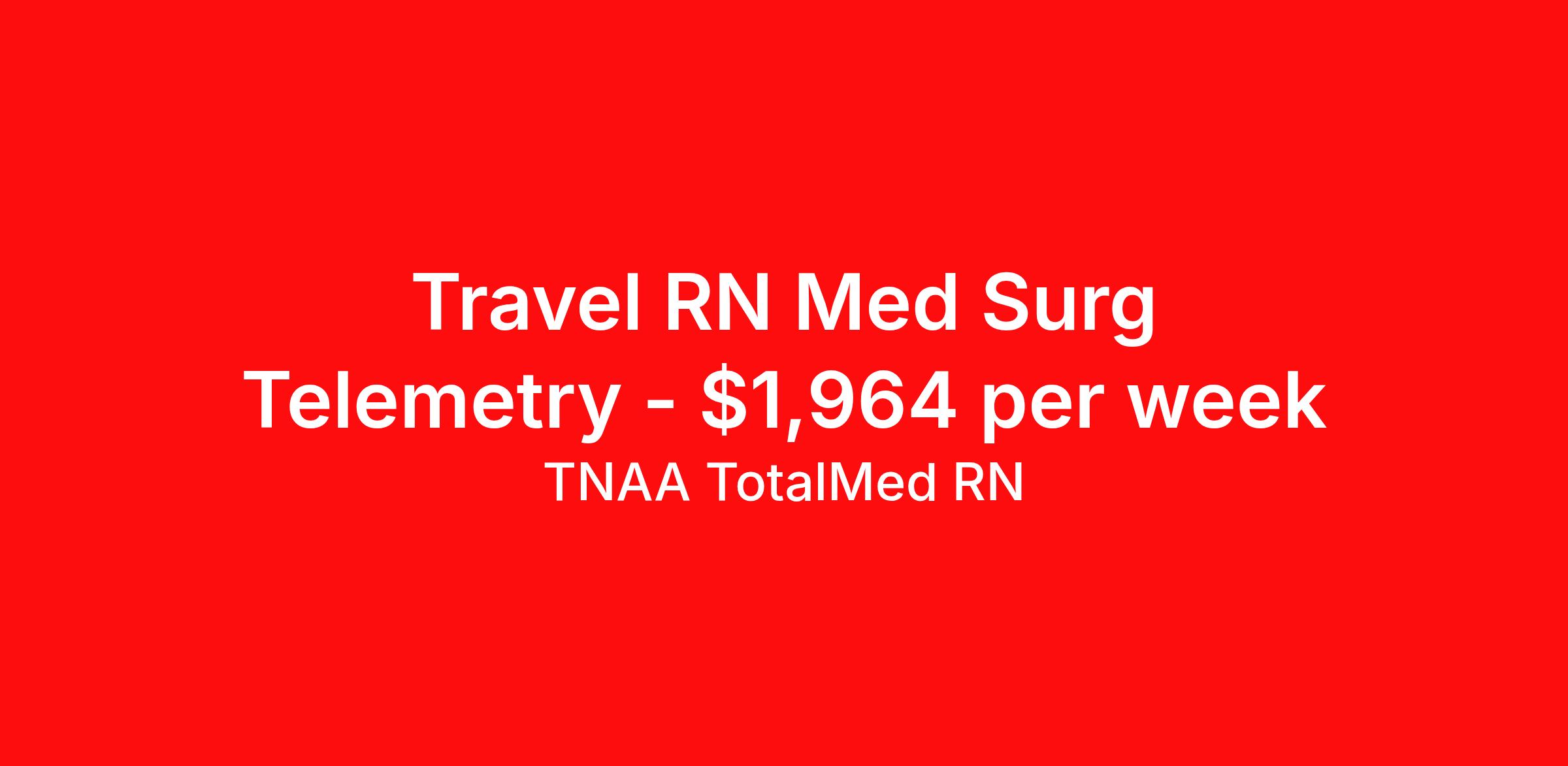 TNAA TotalMed RN is seeking a travel nurse RN Telemetry Med Surg for a travel nursing job in Ottumwa, Iowa. Job Description & Requirements Specialty: Telemetry Discipline: RN Duration: 13 weeks 36 hours per week Shift: 12 hours, nights Employment Type: Travel We're looking for Telemetry RNs for an immediate travel nurse opening in Ottumwa, IA. The right RN should have 1-2 years' recent acute care experience. Read below for more requirements. As a TELE Travel Nurse, you will provide care by connecting patients to machines that measure heart rate, blood pressure, breathing rate, as well as blood-oxygen levels and electrocardiogram information. These machines then send data to computer screens for RNs to monitor. Telemetry RNs read and interpret the data to better determine patient care. As a TELE Travel Nurse, you should be prepared to perform the following tasks: Provide basic bedside care. Monitor and adjust specialized equipment used on patients, and interpret and record electronic displays. Identify irregular telemetry readings and notify appropriate medical team members. Initiate corrective action whenever information from monitoring equipment shows adverse symptomatology. TELE Travel Nurses should be able to stand and walk for long periods of time, as well as bend, lean and stoop without difficulty. RNs should be able to easily lift 20 pounds. Moving or lifting of patients may require lifting of up to 50 pounds at times. RNs must have specific vision abilities including close vision, distance vision, color vision, peripheral vision, depth perception and ability to adjust focus. Requirements*: BLS, CPI, 1.5 Years * Additional certifications may be required before beginning an assignment. TotalMed Travel Job ID 1391839. Pay package is based on 12 hour shifts and 36 hours per week (subject to confirmation) with tax-free stipend amount to be determined. Posted job title: Telemetry - TELE RN - Travel Nurse About TNAA TotalMed RN TotalMed is a Top Ten, travel nursing and healthcare staffing agency with the mission of igniting purpose in healthcare. The organization staffs nurses, therapists, pharmacists, and other clinicians of all specialties in all 50 states. They offer local and travel jobs and match caregivers with the right organization to assist both facilities and patients. As an organization, they focus on putting highly-skilled staff into facilities to ensure adequate staffing for a better patient experience. TotalMed specializes in recruiting and placing healthcare professionals in travel, PRN, and permanent positions across the country in Nursing and Allied Health. Throughout 2020, the organization filled roles at even the most short-staffed facilities during the most challenging time in healthcare. By matching the right travel healthcare professional with the right organization, TotalMed continues to offer a lifeline to facilities and their patients. Benefits Weekly pay Guaranteed Hours Continuing Education 401k retirement plan Sick pay Wellness and fitness programs Referral bonus Employee assistance programs Medical benefits Dental benefits Vision benefits Benefits start day 1