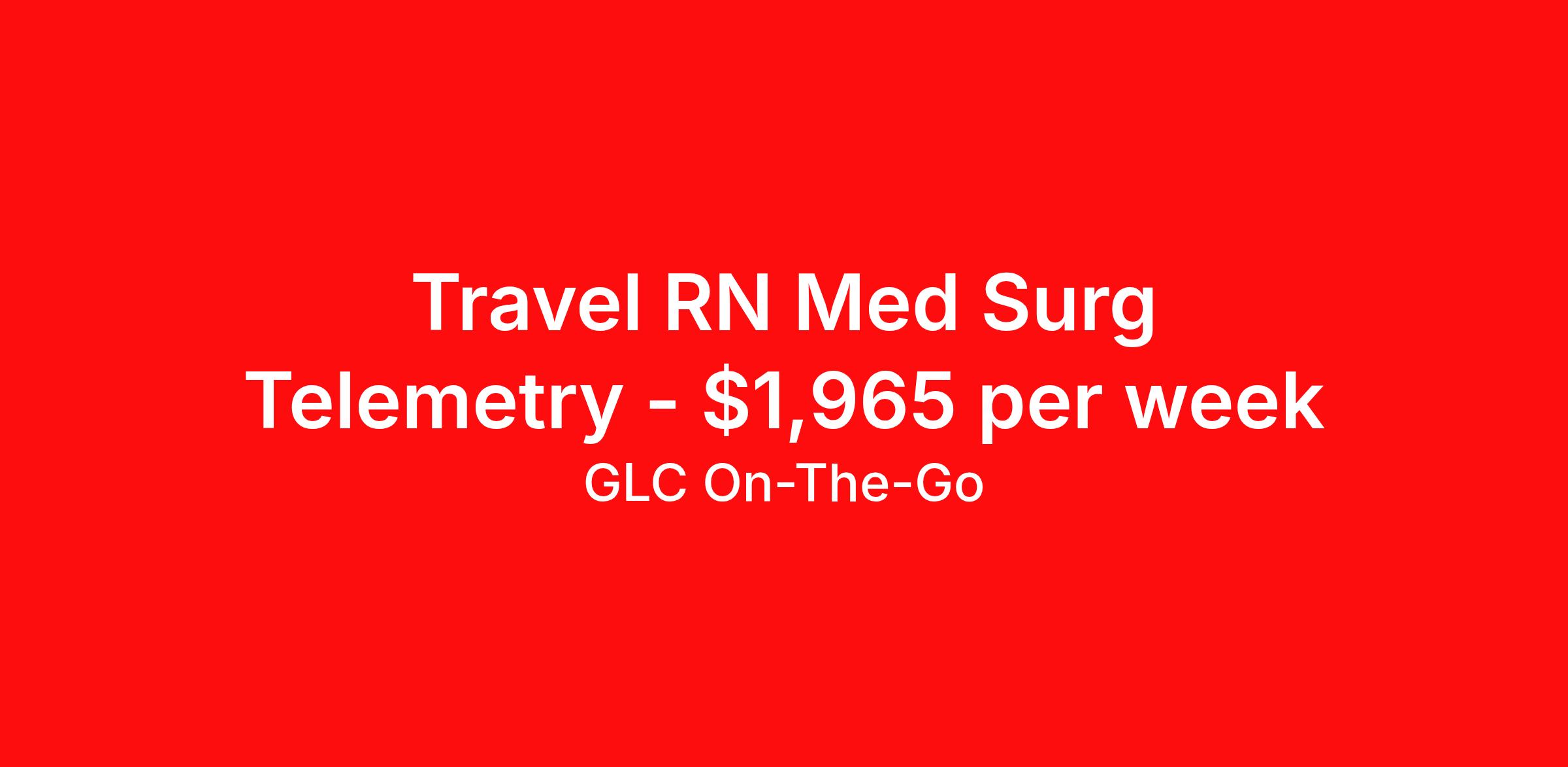 GLC On-The-Go is seeking a travel nurse RN Med Surg / Telemetry for a travel nursing job in Tuscaloosa, Alabama. Job Description & Requirements Specialty: Med Surg / Telemetry Discipline: RN Start Date: 03/30/2026 Duration: 13 weeks 36 hours per week Shift: 12 hours Employment Type: Travel GLC is hiring: RN Med Surg, Telemetry - Tuscaloosa, AL - 13-week contract GLC – Named Best Nurse Agency 2024–2025 We connect nurses, nursing professionals, and allied health professionals like you to contracts that align with your skills, schedule, and career goals. About this Assignment Join the care team in Med Surg, Telemetry where you’ll provide patient-centered care in a collaborative environment. Typical responsibilities include direct patient care, timely documentation, and coordination with the care team. Specific duties will be confirmed during your interview with a recruiter. Assignment Details Location: Tuscaloosa, AL Assignment Length: 13 weeks Start Date: 03/30/2026 End Date: 06/28/2026 Pay Range: $1,769 - $1,965 Minimum Requirements Active license in Med Surg, Telemetry 1 year full-time RN, Med Surg, Telemetry experience within the last 2 years What you can expect from GLC Weekly on-time pay with direct deposit Transparent communication, clear assignment details, and recruiter support from start to finish - or extension Referral bonus up to $500 Health, dental, and vision insurance 401(k) plan Completion and signing bonuses may also be available Ready to move forward? Apply now and start your rewarding journey with GLC - a recruiter will connect quickly to review pay , start date , and assignment details so you can make the best decision for your next contract. GLC On-The-Go Job ID 500517. Pay package is based on 12 hour shifts and 36 hours per week (subject to confirmation) with tax-free stipend amount to be determined. Posted job title: DCH - MS/TELE Stroke 5N - NIGHTS About GLC On-The-Go GLC is more than just a staffing agency – we’re your trusted partner in finding travel, local, and PRN contracts that align with your career aspirations and lifestyle. We specialize in connecting travel nurses and allied healthcare professionals like you with opportunities in acute care, long-term care, behavioral health, and allied fields across the U.S. Our attentive and friendly recruiters are always just a call or text away, ready to guide you at every step, ensuring you feel valued and heard. We understand the unique needs of travel healthcare professionals, which is why we offer comprehensive benefits and 24/7 support. Join GLC, where our 20 years of experience mean we know how to help you find the assignments that turn your career goals into reality. With us, it's not just a placement – it's your dream career made possible