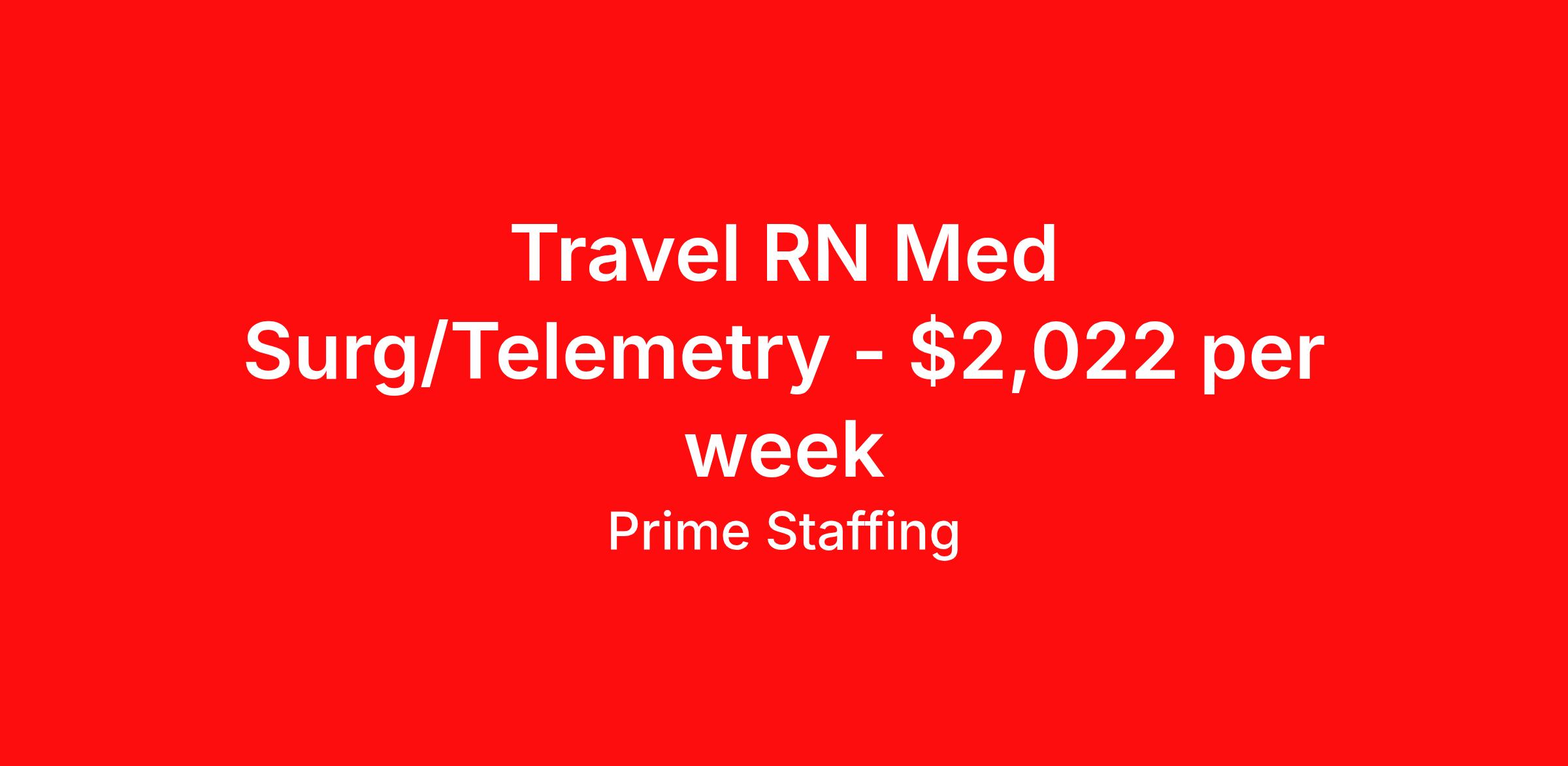 Prime Staffing is seeking a travel nurse RN Med Surg / Telemetry for a travel nursing job in Columbus, Ohio. Job Description & Requirements Specialty: Med Surg / Telemetry Discipline: RN Start Date: 05/04/2026 Duration: 16 weeks 36 hours per week Shift: 12 hours Employment Type: Travel Prime Staffing Job ID 36138324. Pay package is based on 12 hour shifts and 36.0 hours per week (subject to confirmation) with tax-free stipend amount to be determined. Posted job title: RN:Med Surg/Telemetry,19:00:00-07:30:00 About Prime Staffing At Prime Staffing, we understand the importance of finding the perfect fit for both our clients and candidates. Prime Staffing utilizes a unique matchmaking approach, providing the most qualified contingent staffing to our clients, and the most competitive contracts to our workforce. Our experienced team takes the time to get to know both our clients and candidates, their needs, and preferences, to ensure that each placement is a success. We offer a wide range of staffing services including temporary, temp-to-perm, and direct hire placements. Our extensive network of qualified candidates includes nurses, allied healthcare professionals, corporate support professionals and executives.