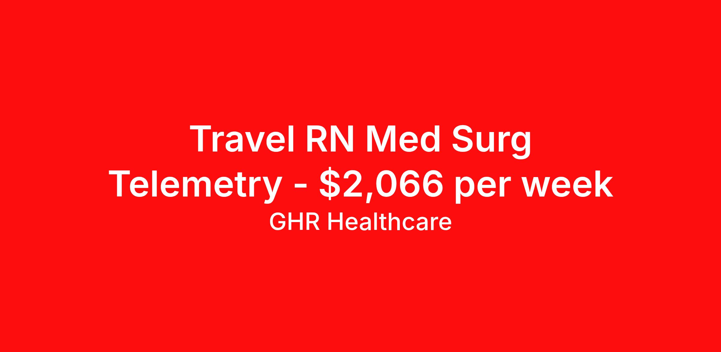 GHR Healthcare is seeking a travel nurse RN Med Surg / Telemetry for a travel nursing job in Tuscaloosa, Alabama. Job Description & Requirements Specialty: Med Surg / Telemetry Discipline: RN Start Date: 03/30/2026 Duration: 13 weeks 36 hours per week Shift: 12 hours Employment Type: Travel Travel Med/Surg Telemetry Registered Nurse (RN) – Tuscaloosa, AL (13-week Travel Assignment) Travel Med/Surg Telemetry RN – Tuscaloosa, AL. 13-week travel nursing opportunity in a 42-bed Heart Failure/Stroke Unit caring for cardiac and stroke patients. Join a dedicated healthcare team in Tuscaloosa, Alabama, as a Med/Surg Telemetry Registered Nurse (RN). This travel nurse assignment offers a chance to provide specialized cardiac and stroke care in a 42-bed Heart Failure / Stroke Unit, working closely with cardiologists and neurologists to deliver best-practice, compassionate acute care. Job Details Location: Tuscaloosa, AL 35401 — Alabama nursing jobs / Tuscaloosa healthcare opportunities Assignment Type: Travel Nurse (Travel Nursing) Start Date: March 30, 2026 End Date: June 28, 2026 Duration: 13 weeks Shifts: 12-hour nights (19:00-07:00), every other weekend and holidays as required Hours per Week: 36 (option for 48 hours per week available) Guaranteed Hours: 36 Number of Positions: 2 Telemetry Nurses / Travel RNs Dress Code: Solid Navy Scrubs Parking: Available on-site EMR: Meditech (experience preferred) Estimated Weekly Salary: $1840-$1940/week Job Requirements Associate's degree in Nursing required; Registered Nurse (RN) license Active RN license in Alabama or Compact State (no temporary licenses accepted) Current AHA or Red Cross BLS and ACLS certifications NIH Stroke Scale certification required Minimum 2 years of nursing experience (will consider 18 months with at least 1 year in Med/Surg Telemetry specialty) Telemetry experience, cardiac nursing, and stroke care experience preferred Experience with Meditech EMR preferred Must be willing to float to other units and hospitals within the system as needed Responsibilities Deliver high-quality, compassionate care to patients with heart failure, acute stroke, and other neuro-cardiac conditions Monitor and interpret telemetry data; act promptly on telemetry alarms and changes in patient status Provide acute care nursing, including medication administration, treatments, and interventions per protocol Collaborate with interdisciplinary teams, including cardiologists and neurologists, to develop and implement individualized care plans Document all patient care activities accurately and timely in Meditech EMR Float to other units or hospitals within the system as required Work every other weekend and holidays as scheduled; participate in unit-based initiatives to improve patient outcomes Why Join Us: This is an excellent travel nursing job for experienced Med/Surg Telemetry RNs seeking hands-on cardiac nursing and stroke unit experience in Tuscaloosa, AL. You will work in a supportive team environment with opportunities to collaborate with specialty providers and sharpen telemetry and acute care skills. Apply now to be considered for this Travel Med/Surg Telemetry Registered Nurse (RN) position in Tuscaloosa, AL. Join our healthcare team today and advance your career in telemetry and cardiac nursing. Benefits 401K with Matching, Healthcare, Dental and Vision Equal Opportunity We are an equal opportunity employer and value diversity across our organization. We do not discriminate on the basis of race, religion, color, national origin, gender, sexual orientation, age, marital status, veteran status, or disability status. GHR Healthcare Job ID 463867. Pay package is based on 12 hour shifts and 36 hours per week (subject to confirmation) with tax-free stipend amount to be determined. Posted job title: Med/Surg Tele About GHR Healthcare For over 30 years, GHR Healthcare has been the bridge between healthcare professionals and the facilities that need them nationwide. We're committed to uncovering your ideal fit, supported by GHR's dedication to competitive compensation, transparent communication, and a devoted team that genuinely cares about your career journey. You can trust us to stand by your side as your advocate, confidante, and partner in advancing your career. At GHR, care and consideration are at the heart of everything we do. Visit ghrhealthcare.com to learn more.