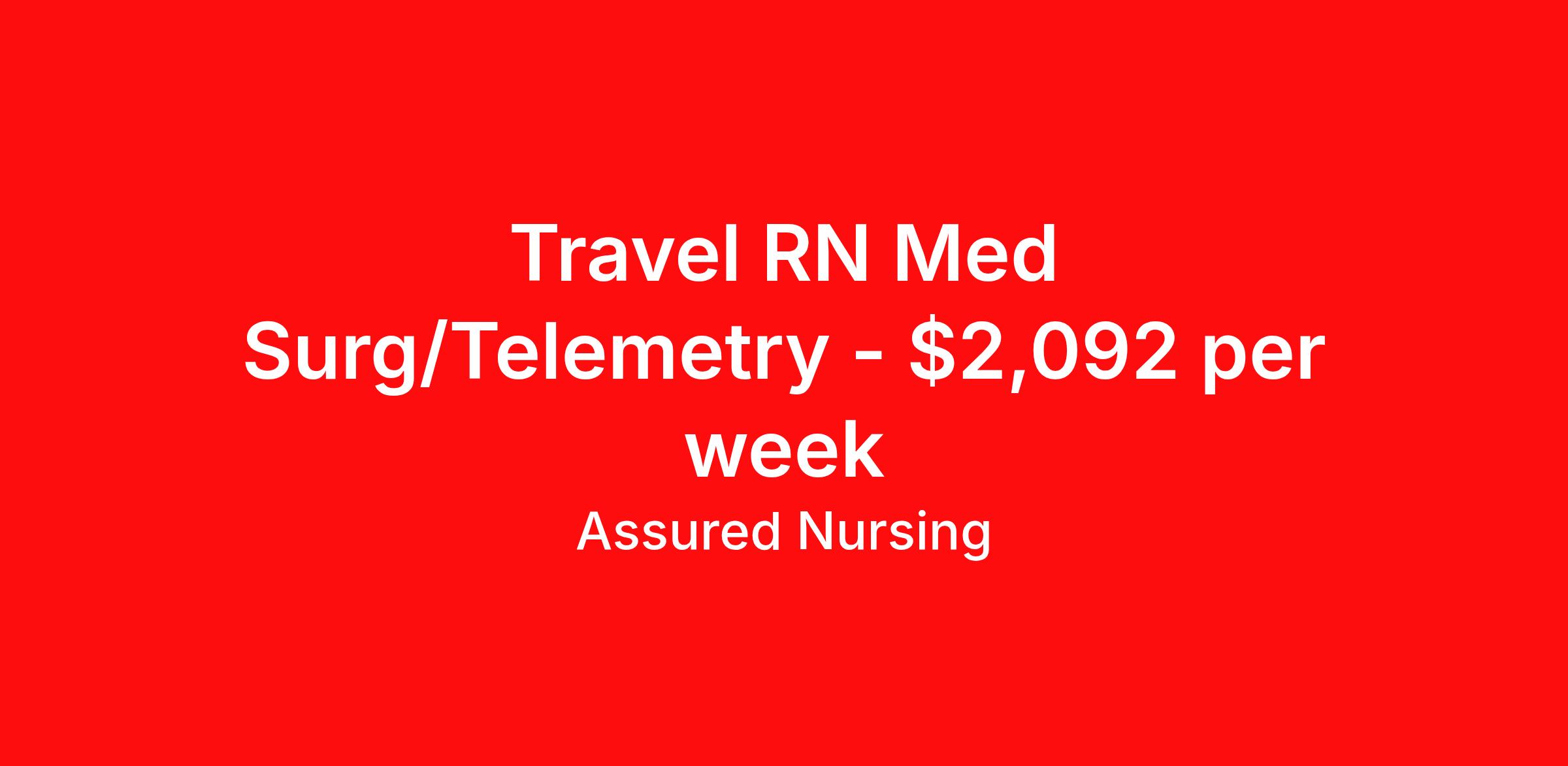 Assured Nursing is seeking a travel nurse RN Med Surg / Telemetry for a travel nursing job in Salina, Kansas. Job Description & Requirements Specialty: Med Surg / Telemetry Discipline: RN Start Date: 06/01/2026 Duration: 13 weeks 36 hours per week Shift: 12 hours, nights Employment Type: Travel Assured Nursing is currently seeking a RN for a contract position in Salina Kansas . This is a 7p-7:30a, 19:00:00-07:30:00, 12.00-3 position in the 1.6030 | 4 Medical . The ideal candidate will possess a current state license as a RN and have at least 2 years of recent experience as a MS/TELE RN . Assured Nursing Job ID 36000644. Pay package is based on 12 hour shifts and 36.0 hours per week (subject to confirmation) with tax-free stipend amount to be determined. Posted job title: RN:MS/TELE,19:00:00-07:30:00 Benefits Weekly pay Holiday Pay 401k retirement plan Referral bonus Medical benefits Dental benefits Vision benefits