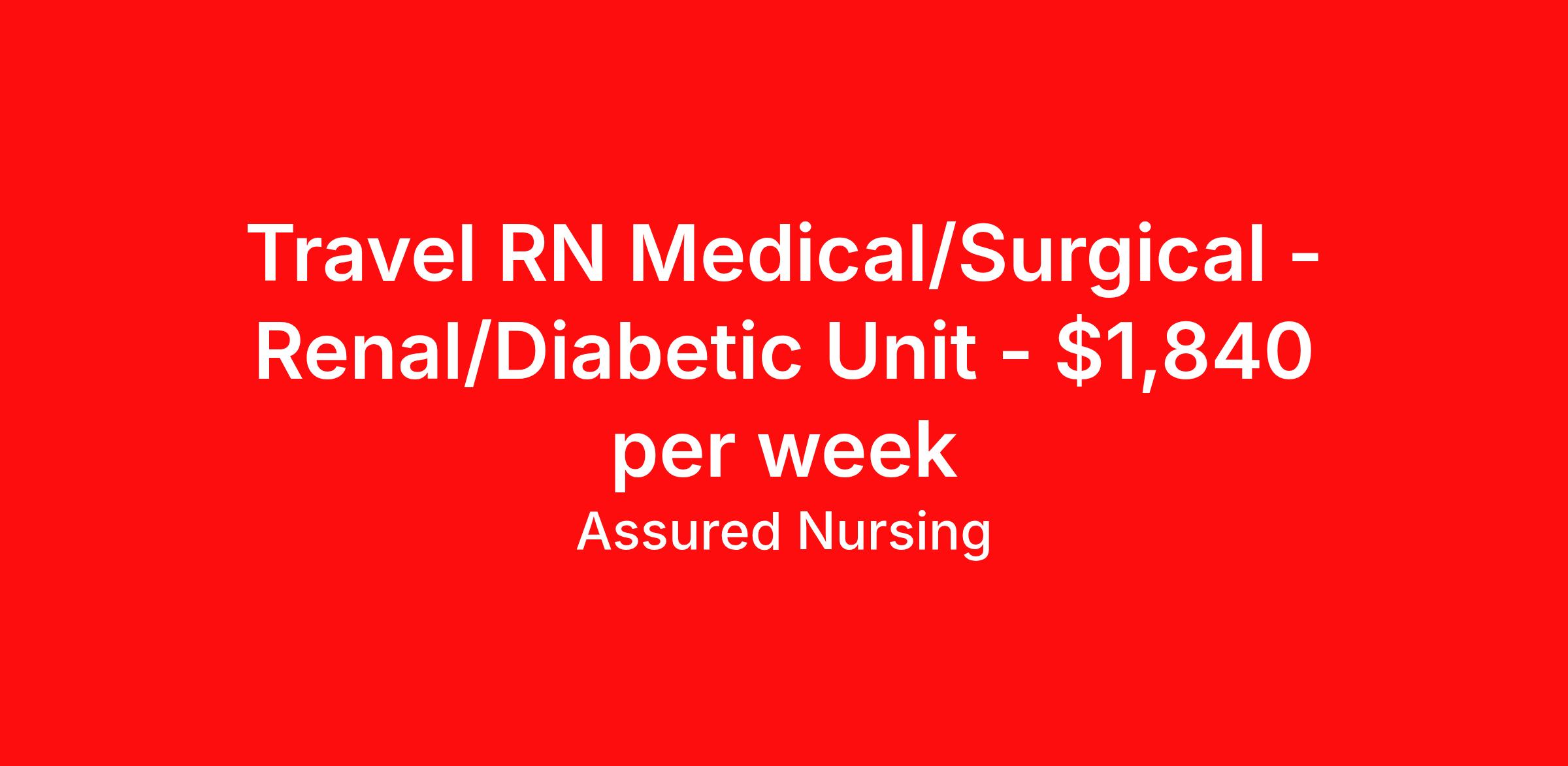 Travel RN Medical/Surgical - Renal/Diabetic Unit - $1,840 per week