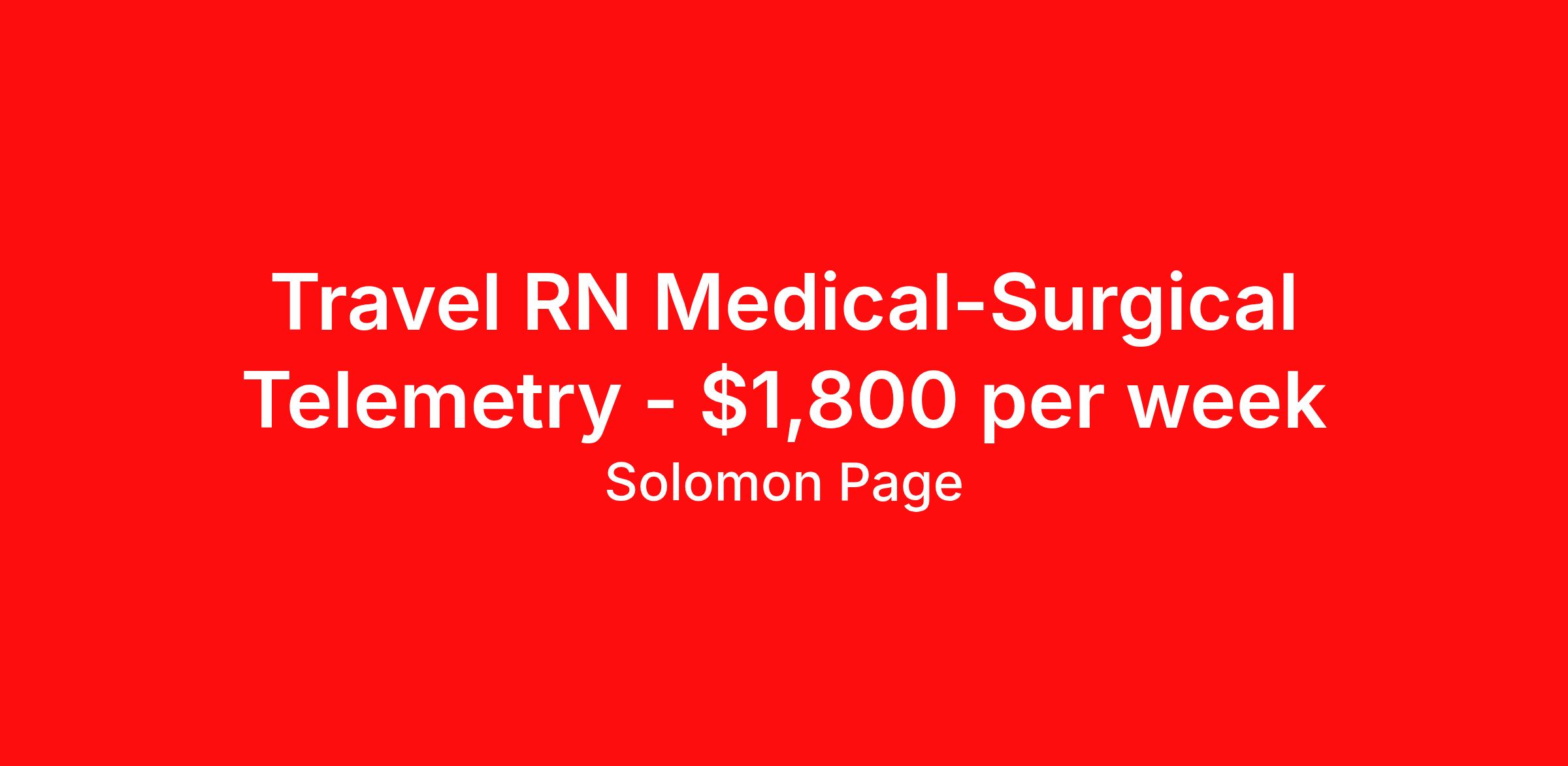Travel RN Medical-Surgical Telemetry - $1,800 per week