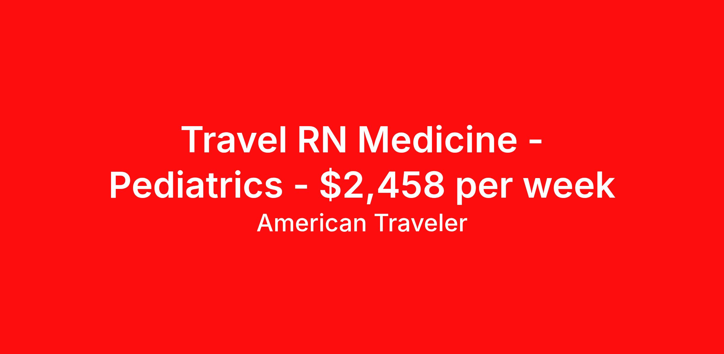 American Traveler is seeking a travel nurse RN Pediatric Med Surg for a travel nursing job in Oklahoma City, Oklahoma. Job Description & Requirements Specialty: Pediatric Med Surg Discipline: RN Start Date: ASAP Duration: 13 weeks 36 hours per week Shift: 12 hours, days Employment Type: Travel Assignment Overview Shift: Days, 3x12hrs Hours: 36 hrs/wk Start Date: Feb 23, 2026 Length: 13 weeks Openings: 1 Description American Traveler is seeking an experienced RN for a Pediatric Float Pool position requiring an active OK or compact RN license and at least one year of nursing experience. Details Work in the Pediatric Float Pool within a hospital setting Required to float to various pediatric units as needed Twelve-hour shifts, three days per week Weekend and holiday shifts are required Requirements Active RN license issued by OK or a valid multistate compact RN license (eNLC) Current BLS and PALS certifications from the American Heart Association Associate's Degree in Nursing from an accredited program required Minimum of one year prior RN experience required Some computer proficiency and strong communication skills Additional Information Patient care responsibilities include administering medication, monitoring vital signs, and assisting physicians with procedures Expected to interact with and support both patients and their families regarding care plans and hospital procedures Delegates appropriate tasks to support staff and works collaboratively with the healthcare team Work must be performed more than 50 miles from the facility; local candidates within a 50-mile radius are not eligible Holiday coverage is required as scheduled American Traveler Job ID P-671807. Pay package is based on 12 hour shifts and 36 hours per week (subject to confirmation) with tax-free stipend amount to be determined. Posted job title: Travel RN - Pediatrics Float Pool About American Traveler With over 25 years of experience, American Traveler has established a reputation for outstanding customer service. Our team ensures a smooth, worry-free experience for those starting on or expanding their travel nursing and allied careers. With thousands of travel nursing and allied jobs nationwide, our attentive and approachable recruiters find positions that align perfectly with your career aspirations and personal requirements. American Traveler offers exceptional benefits, including premium medical, dental, vision and life insurance beginning day one of your assignment, generous 401(k) match, substantial housing stipends, and more. Additionally, with 24/7 support and access to our in-house clinicians, you are assured confidence and comfort throughout your assignment. With our team behind you, you can relax and enjoy a rewarding travel career.