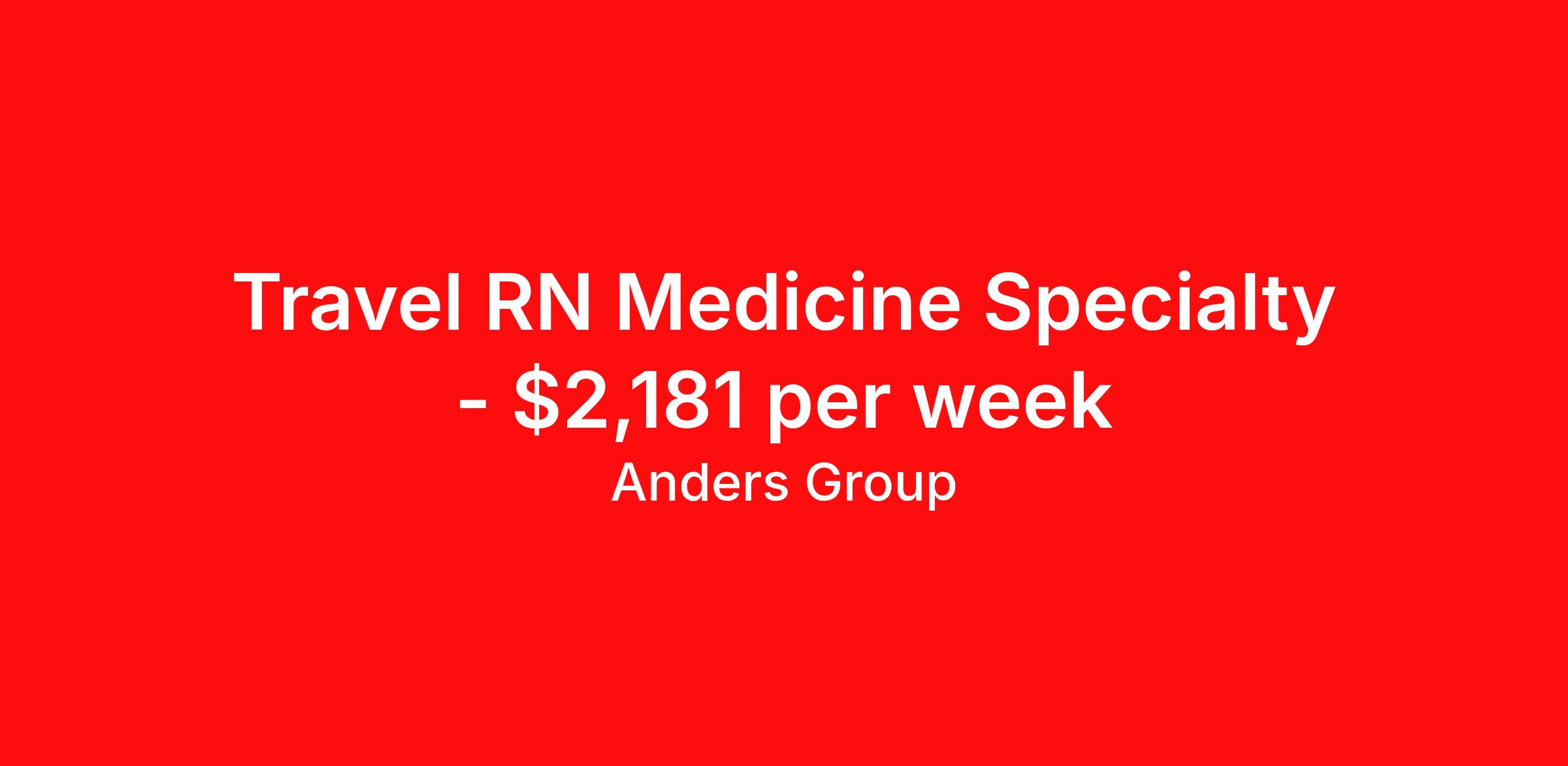 Travel RN Medicine Specialty - $2,181 per week