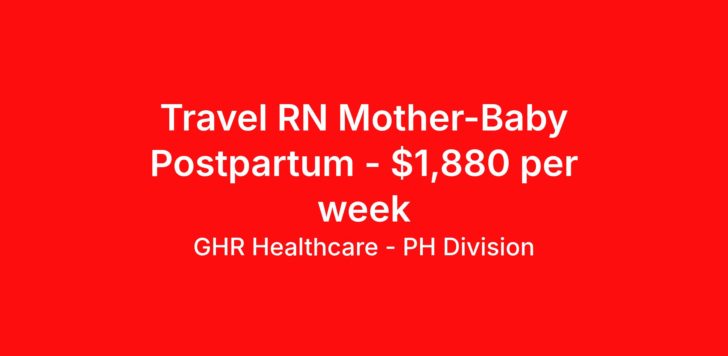 GHR Healthcare - PH Division is seeking a travel nurse RN Maternal - Newborn for a travel nursing job in Columbus, Ohio. Job Description & Requirements Specialty: Maternal - Newborn Discipline: RN Start Date: 05/04/2026 Duration: 13 weeks 36 hours per week Shift: 12 hours Employment Type: Travel Planet Healthcare Job ID 76330159. Pay package is based on 12 hour shifts and 36 hours per week (subject to confirmation) with tax-free stipend amount to be determined. About GHR Healthcare - PH Division For over 30 years, GHR Healthcare has been the bridge between healthcare professionals and the facilities that need them nationwide. We're committed to uncovering your ideal fit, supported by GHR's dedication to competitive compensation, transparent communication, and a devoted team that genuinely cares about your career journey. You can trust us to stand by your side as your advocate, confidante, and partner in advancing your career. At GHR, care and consideration are at the heart of everything we do. Visit ghrhealthcare.com to learn more.