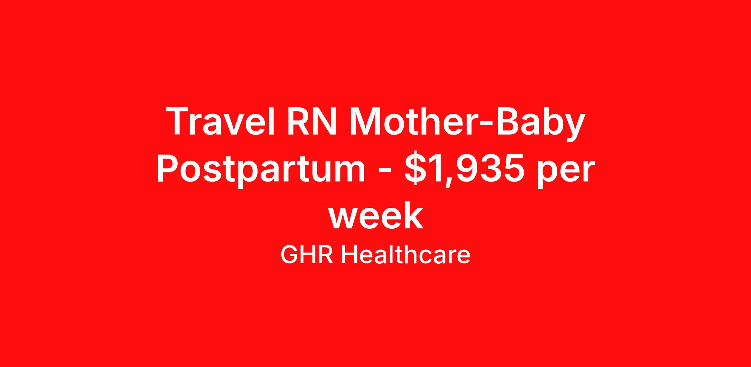 GHR Healthcare is seeking a travel nurse RN Maternal - Newborn for a travel nursing job in Columbus, Ohio. Job Description & Requirements Specialty: Maternal - Newborn Discipline: RN Start Date: 05/04/2026 Duration: 13 weeks 36 hours per week Shift: 12 hours Employment Type: Travel GHR Healthcare Job ID 76330159. Pay package is based on 12 hour shifts and 36 hours per week (subject to confirmation) with tax-free stipend amount to be determined. About GHR Healthcare For over 30 years, GHR Healthcare has been the bridge between healthcare professionals and the facilities that need them nationwide. We're committed to uncovering your ideal fit, supported by GHR's dedication to competitive compensation, transparent communication, and a devoted team that genuinely cares about your career journey. You can trust us to stand by your side as your advocate, confidante, and partner in advancing your career. At GHR, care and consideration are at the heart of everything we do. Visit ghrhealthcare.com to learn more.