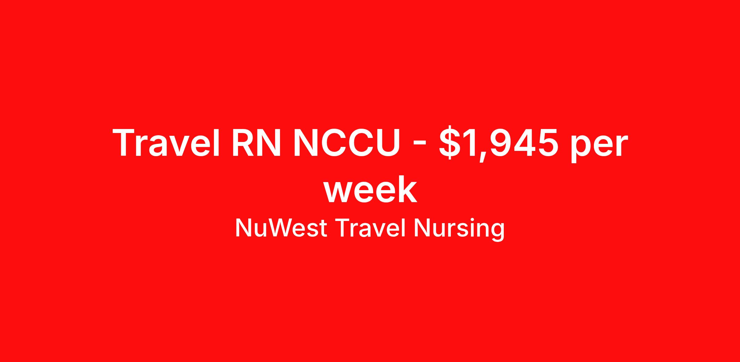 NuWest Travel Nursing is seeking a travel nurse RN Neuro ICU for a travel nursing job in Baltimore, Maryland. Job Description & Requirements Specialty: Neuro ICU Discipline: RN Duration: 13 weeks 36 hours per week Shift: 12 hours Employment Type: Travel We have a new assignment for RN - NCCU in Baltimore, MD and are interviewing ASAP. This is a travel assignment, 3x12 Rotating position at a great facility. Pay Range: $1787.33 - $2102.74 Per Week Benefits include medical, dental, vision, 401K, weekly direct deposit, and more! NuWest Travel Nursing Job ID 269942. Pay package is based on 12 hour shifts and 36 hours per week (subject to confirmation) with tax-free stipend amount to be determined.