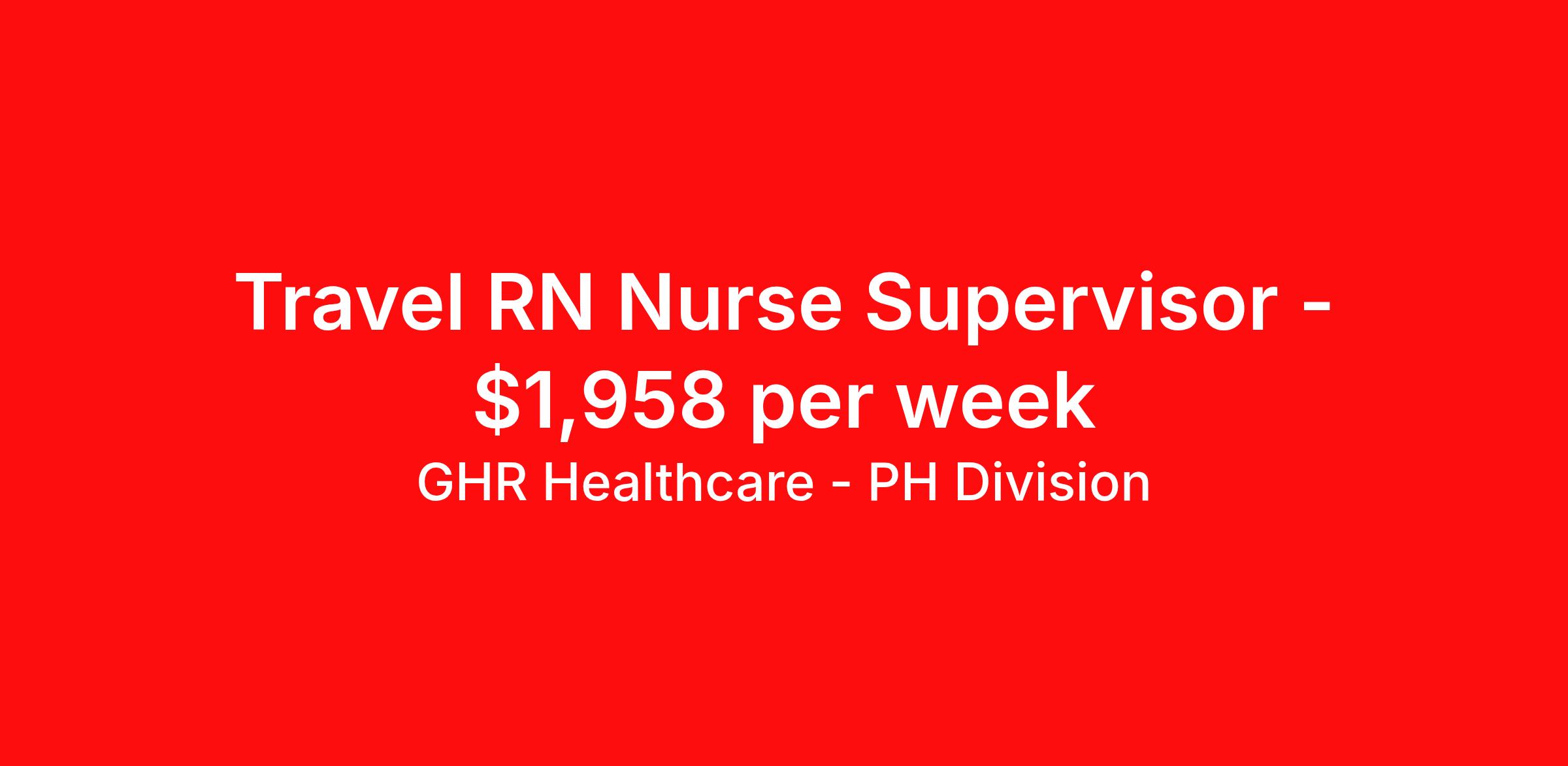GHR Healthcare - PH Division is seeking a travel nurse RN Manager Supervisor for a travel nursing job in Waterloo, New York. Job Description & Requirements Specialty: Manager Discipline: RN Start Date: 04/07/2026 Duration: 13 weeks 36 hours per week Shift: 12 hours Employment Type: Travel Planet Healthcare Job ID 76335814. Pay package is based on 12 hour shifts and 36 hours per week (subject to confirmation) with tax-free stipend amount to be determined. About GHR Healthcare - PH Division For over 30 years, GHR Healthcare has been the bridge between healthcare professionals and the facilities that need them nationwide. We're committed to uncovering your ideal fit, supported by GHR's dedication to competitive compensation, transparent communication, and a devoted team that genuinely cares about your career journey. You can trust us to stand by your side as your advocate, confidante, and partner in advancing your career. At GHR, care and consideration are at the heart of everything we do. Visit ghrhealthcare.com to learn more.