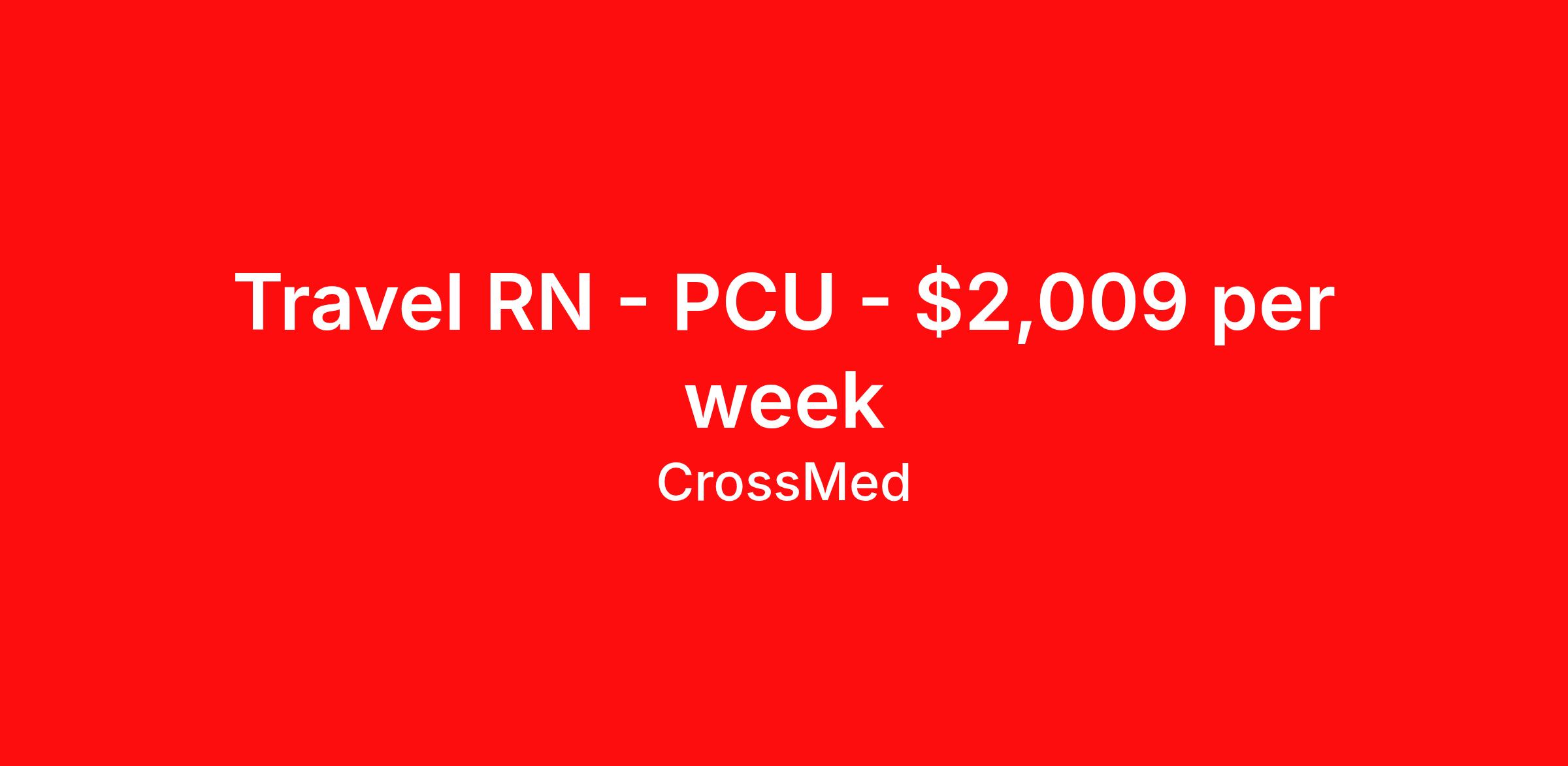 CrossMed is seeking a travel nurse RN PCU - Progressive Care Unit for a travel nursing job in Johnson City, Tennessee. Job Description & Requirements Specialty: PCU - Progressive Care Unit Discipline: RN Start Date: 03/29/2026 Duration: 13 weeks 36 hours per week Shift: 12 hours Employment Type: Travel Job Details Gross Weekly Pay: $1911.60 - $2008.80 Starts: 2026-03-29 Assignment Length: 13 Weeks Shift: Overnight shift. Hours Per Week: 36 Job Quantity: 1 Type: Travel City: Johnson City State: TN At CrossMed Healthcare Staffing, we aim to create lasting impressions wherever we go. Embark on your healthcare traveler journey with us and discover the CrossMed advantage. We offer competitive pay packages, comprehensive benefits, an in-house clinical team, and dedicated recruiters committed to your success. Our goal is to become the preferred staffing provider by delivering top-notch customer service. Join us and experience the difference firsthand! Benefits: Competitive weekly pay Insurance (Health, Dental, Vision) Life Insurance 401(k) Referral Bonus Reimbursement for Licensure & CEU’s Refer-a-Friend Bonus Program EAP Program Qualifications: At minimum 1 - 2 years’ experience preferred Graduate from an accredited school Certifications may be required based on facility requirements Physical abilities – remain in a stationary position, move and lift equipment (50-100 lbs), pushing, bending and pulling Communication and collaborates with physicians and other health team members Provides and coordinates patient care with other health team members Monitors patients’ responses to interventions and reports outcomes Administers medications as ordered with appropriate documentation Monitor and evaluates patients before, during, and post procedure depending on unit Shares on-call responsibilities with a 30-minute response time if required Maintains cleanliness of rooms and adequate stock of supplies Transports patients as needed Performs other duties as assigned Required Skills: Interpersonal Skills – ability to work with diverse personnel (professional and support staff) while maintaining a positive demeanor and professional appearance. Technical Skills - the ability to grasp, push/pull, and move while assisting with procedures or operating departmental equipment. Cognitive Demands - capable of managing frequent interactions with the public and customers and meeting deadlines under pressure. Comfortable working under occasional close supervision or independently. Sensory Skills - keen visual understanding and practical communication abilities. CrossMed Job ID 675687. Pay package is based on 12 hour shifts and 36 hours per week (subject to confirmation) with tax-free stipend amount to be determined. Posted job title: Stepdown/PCU RN | Registered Nurse About CrossMed At CrossMed Healthcare Staffing, we aim to create lasting impressions wherever we go. Embark on your healthcare traveler journey with us and discover the CrossMed advantage. We offer competitive pay packages, comprehensive benefits, an in-house clinical team, and dedicated recruiters committed to your success. Our goal is to become the preferred staffing provider by delivering top-notch customer service. Join us and experience the difference firsthand! Benefits Weekly pay Holiday Pay Guaranteed Hours Continuing Education Company provided housing options Mileage reimbursement Referral bonus Medical benefits Dental benefits Vision benefits License and certification reimbursement Life insurance