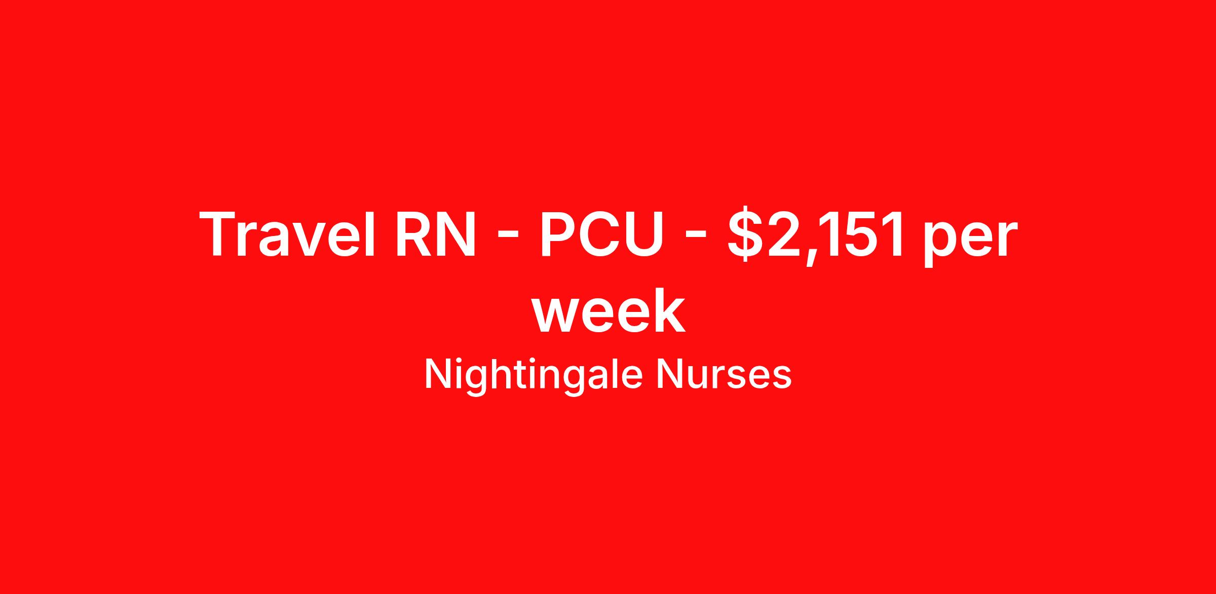 Nightingale Nurses is seeking a travel nurse RN PCU - Progressive Care Unit for a travel nursing job in Johnson City, Tennessee. Job Description & Requirements Specialty: PCU - Progressive Care Unit Discipline: RN Start Date: 03/29/2026 Duration: 13 weeks 36 hours per week Shift: 12 hours, nights Employment Type: Travel About Nightingale Nurses the first name in travel nursing You may not realize it, but as an RN with real world hospital experience, you are legendary. To the lives you’ve helped save, the patients you’ve cared for, and to the hospitals where you’ve done it. And you’re just getting started. Legendary is where Nightingale begins. We’re the first name in travel nursing, representing only the very best RNs. That’s why hospitals prefer us, allowing us to offer exceptional travel nursing assignments all over the US, as well as the highest pay rates and most extensive benefits in the industry. Nightingale facilitates every aspect of your travel nursing assignment, so you can focus on doing what you do best. We want you to grow, explore, and enjoy unrivaled liberty, the freedom to nurse.