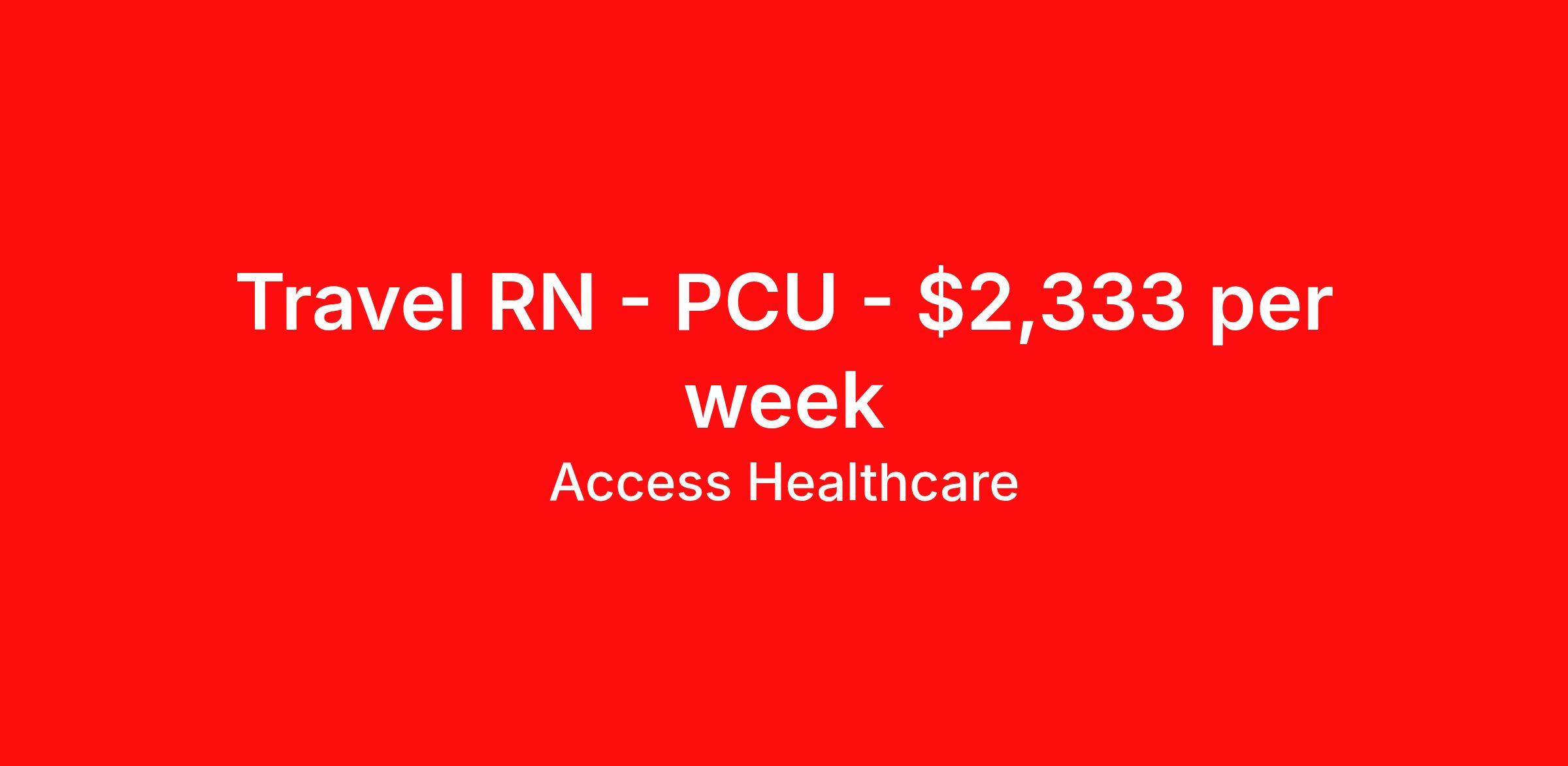 Access Healthcare is seeking a travel nurse RN PCU - Progressive Care Unit for a travel nursing job in Johnson City, Tennessee. Job Description & Requirements Specialty: PCU - Progressive Care Unit Discipline: RN Start Date: 04/12/2026 Duration: 13 weeks 36 hours per week Shift: 12 hours, nights Employment Type: Travel Access Healthcare Job ID 76202862. Pay package is based on 12 hour shifts and 36 hours per week (subject to confirmation) with tax-free stipend amount to be determined. About Access Healthcare Access Healthcare aims to provide superior service to our nursing family by providing around the clock support, competitive pay packages and an unmatched benefits package! Unlike other agencies, we offer a true family feel and work with you to find the placement that is right for you. We offer one of the top leading pay packages in the industry and we are ready to get you the money you deserve! Access Healthcare was founded by two travel nurses, Danielle and Diego, who had a dream and a shared vision of creating an agency which all nurses would want to work with. Our passion has led us to where we are today as one of the top 10 agencies in our home state of New Jersey, with access to contracts in all 50 states! We encourage you to join our team and we cannot wait to get to know you!