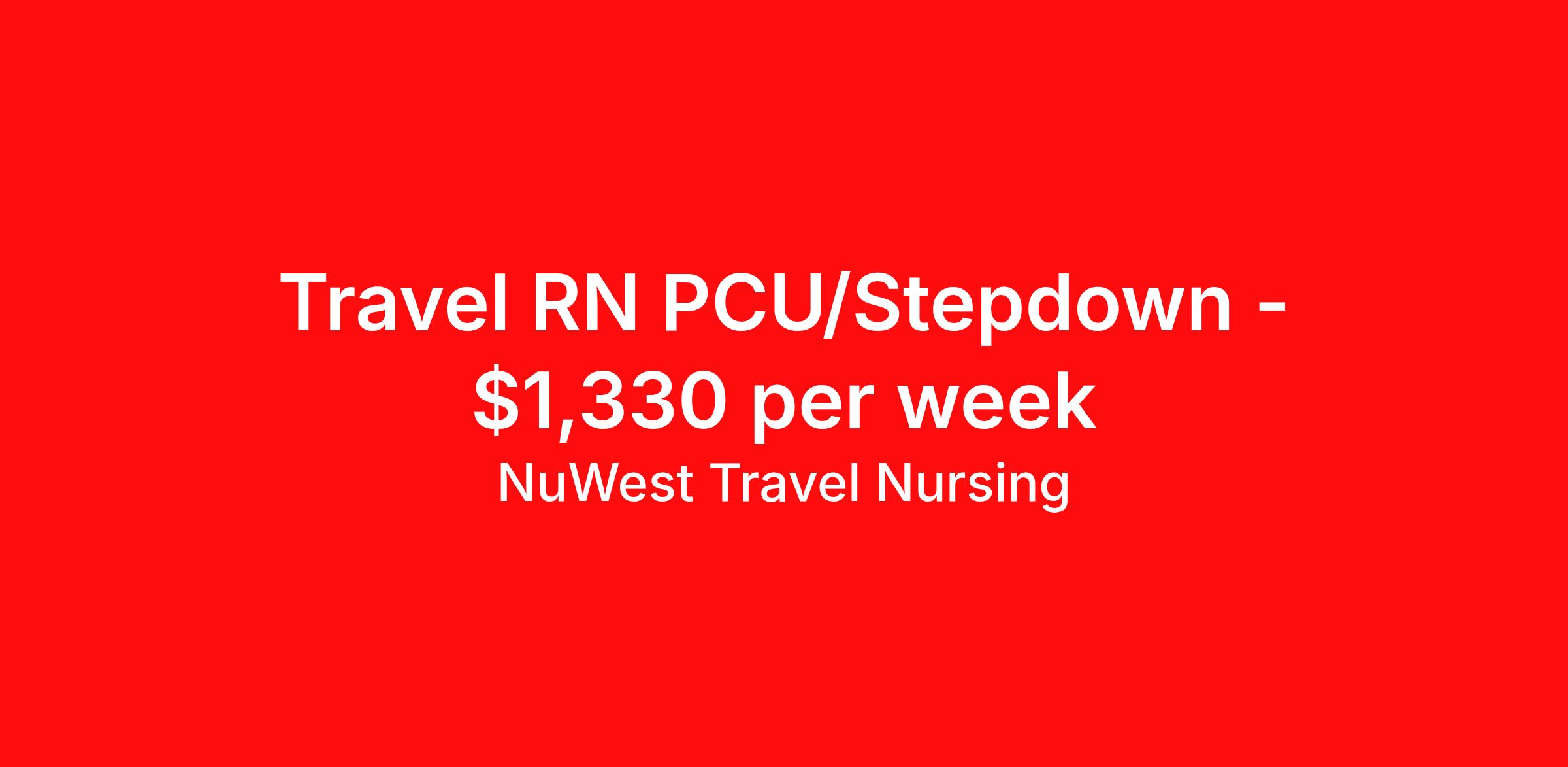 NuWest Travel Nursing is seeking a travel nurse RN PCU - Progressive Care Unit for a travel nursing job in Jacksonville, Florida. Job Description & Requirements Specialty: PCU - Progressive Care Unit Discipline: RN Duration: 13 weeks 36 hours per week Shift: 12 hours Employment Type: Travel We have a new assignment for RN - PCU/Stepdown in Jacksonville, FL and are interviewing ASAP. This is a travel assignment, 3x12 Days position at a great facility. Pay Range: $1222.23 - $1437.91 Per Week Benefits include medical, dental, vision, 401K, weekly direct deposit, and more! NuWest Travel Nursing Job ID 270133. Pay package is based on 12 hour shifts and 36 hours per week (subject to confirmation) with tax-free stipend amount to be determined.