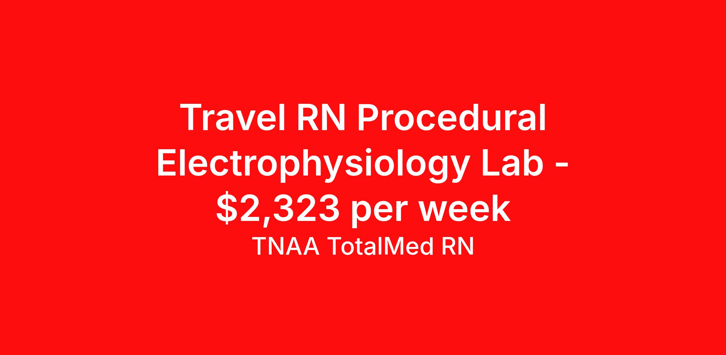 TNAA TotalMed RN is seeking a travel nurse RN Electrophysiology Lab for a travel nursing job in Oklahoma City, Oklahoma. Job Description & Requirements Specialty: Electrophysiology Lab Discipline: RN Duration: 13 weeks 40 hours per week Shift: 8 hours, days Employment Type: Travel We're looking for Registered Nurses (RN) for an immediate travel opening in Oklahoma City, OK for our Electrophysiology(EP) Lab. The right RN should have at least 1 year of experience in an EP Lab setting. Read below for more details. As an EP Lab RN, you'll work with a highly skilled team of medical professionals in the EP lab providing assistance to the physician, including maintaining and monitoring of equipment, as well as assisting with therapeutic and diagnostic procedures. As an EP Lab Travel Nurse, you should be prepared to perform the following tasks: Learn complex technologies effectively Assist physicians with procedures that diagnose and treat heart rhythm problems Assist with ablations, pacemaker and defibrillator implants, cardioversions, loop recorder implants and more Assist with diagnostic studies such as cardiac mapping and EP studies EP Lab Travel Nurses should be able to stand and walk for long periods of time, as well as bend, lean and stoop without difficulty. RNs should be able to easily lift 20 pounds. Moving or lifting of patients may require lifting of up to 50 pounds at times. Because of the fast-paced environment, EP Lab Travel Nurses must possess good skills for coping with stress and be able to relate to people of all ages and backgrounds. Requirements*: ACLS, BLS, 2 Years * Additional certifications may be required before beginning an assignment. TotalMed Travel Job ID 1389339. Pay package is based on 8 hour shifts and 40 hours per week (subject to confirmation) with tax-free stipend amount to be determined. Posted job title: EP Lab - EP Lab RN - Travel Nurse About TNAA TotalMed RN TotalMed is a Top Ten, travel nursing and healthcare staffing agency with the mission of igniting purpose in healthcare. The organization staffs nurses, therapists, pharmacists, and other clinicians of all specialties in all 50 states. They offer local and travel jobs and match caregivers with the right organization to assist both facilities and patients. As an organization, they focus on putting highly-skilled staff into facilities to ensure adequate staffing for a better patient experience. TotalMed specializes in recruiting and placing healthcare professionals in travel, PRN, and permanent positions across the country in Nursing and Allied Health. Throughout 2020, the organization filled roles at even the most short-staffed facilities during the most challenging time in healthcare. By matching the right travel healthcare professional with the right organization, TotalMed continues to offer a lifeline to facilities and their patients. Benefits Weekly pay Guaranteed Hours Continuing Education 401k retirement plan Sick pay Wellness and fitness programs Referral bonus Employee assistance programs Medical benefits Dental benefits Vision benefits Benefits start day 1