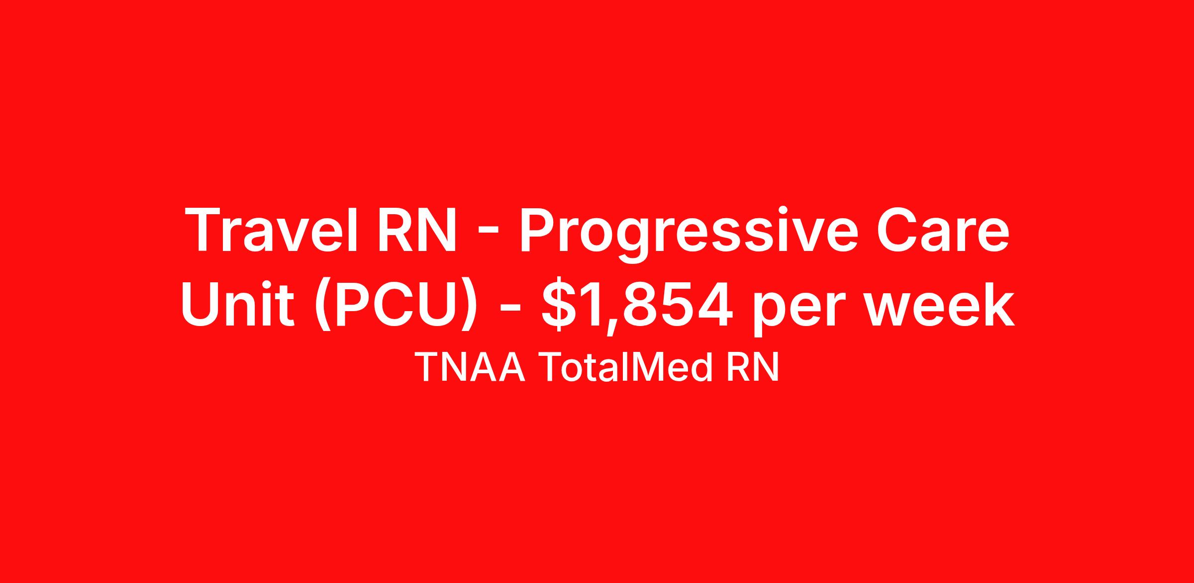 TNAA TotalMed RN is seeking a travel nurse RN PCU - Progressive Care Unit for a travel nursing job in Louisville, Kentucky. Job Description & Requirements Specialty: PCU - Progressive Care Unit Discipline: RN Duration: 13 weeks 36 hours per week Shift: 12 hours, days Employment Type: Travel We're looking for Progressive Care Unit RNs for an immediate travel nurse opening in Louisville, KY. The right RN should have 1-2 years recent acute care experience. Read below for more requirements. As a PCU Travel Nurse, you will care for patients who require close monitoring and frequent assessment, but aren't unstable enough to need ICU care. Progressive Care Unit RNs will utilize computer equipment to monitor cardiac and other vital information, detecting any changes and thereby enabling intervention of life-threatening or emergency situations. Close observation is necessary as many PCU patients receive a significant amount of complex medications, sometimes through an intravenous line that may need to be adjusted or titrated. The PCU RN is sometimes also called a step-down nurse, and the PCU is also known as cardiac stepdown, medical stepdown, neuro stepdown, surgical stepdown and ER holding. As a PCU Travel Nurse, you should be prepared to perform the following tasks: Provide basic bedside care; stabilize critical cardiac patients. Change dressings, insert catheters and start IVs. Prepare, administer and record prescribed medication, reporting any adverse reactions to treatment. Monitor and adjust specialized equipment used on patients, and interpret and record electronic displays. Initiate corrective action whenever information from monitoring equipment shows adverse symptomatology. PCU Travel Nurses should be able to stand and walk for long periods of time, as well as bend, lean and stoop without difficulty. RNs should be able to easily lift 20 pounds. Moving or lifting of patients may require lifting of up to 50 pounds at times. Because of the fast-paced environment, Progressive Care Unit RNs must possess good skills for coping with stress and be able to relate to people of all ages and backgrounds. Requirements*: BLS, ACLS, NIH, 2 Years * Additional certifications may be required before beginning an assignment. TotalMed Travel Job ID 1393108. Pay package is based on 12 hour shifts and 36 hours per week (subject to confirmation) with tax-free stipend amount to be determined. Posted job title: Progressive Care Unit - PCU RN - Travel Nurse About TNAA TotalMed RN TotalMed is a Top Ten, travel nursing and healthcare staffing agency with the mission of igniting purpose in healthcare. The organization staffs nurses, therapists, pharmacists, and other clinicians of all specialties in all 50 states. They offer local and travel jobs and match caregivers with the right organization to assist both facilities and patients. As an organization, they focus on putting highly-skilled staff into facilities to ensure adequate staffing for a better patient experience. TotalMed specializes in recruiting and placing healthcare professionals in travel, PRN, and permanent positions across the country in Nursing and Allied Health. Throughout 2020, the organization filled roles at even the most short-staffed facilities during the most challenging time in healthcare. By matching the right travel healthcare professional with the right organization, TotalMed continues to offer a lifeline to facilities and their patients. Benefits Weekly pay Guaranteed Hours Continuing Education 401k retirement plan Sick pay Wellness and fitness programs Referral bonus Employee assistance programs Medical benefits Dental benefits Vision benefits Benefits start day 1