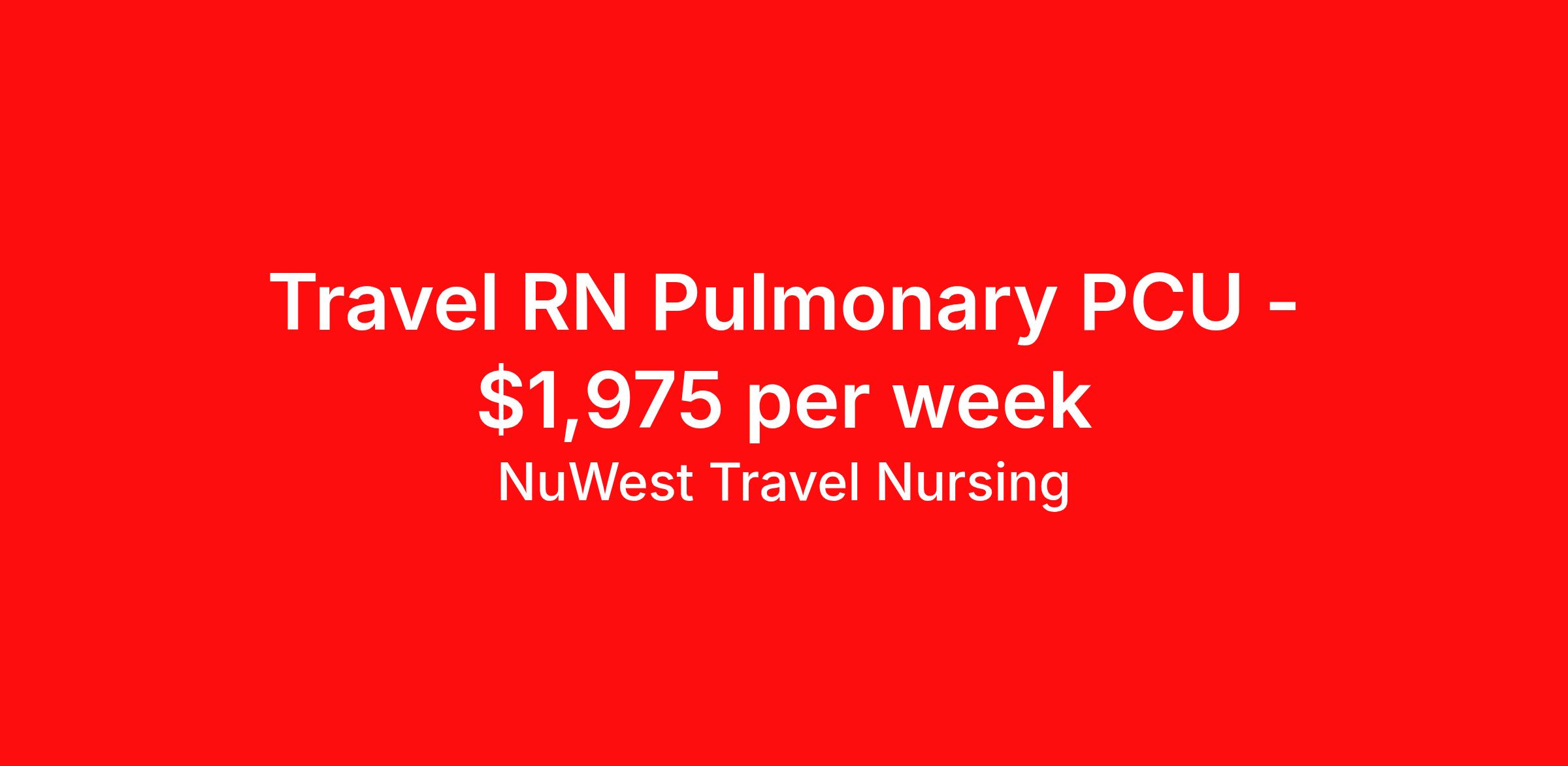 NuWest Travel Nursing is seeking a travel nurse RN PCU - Progressive Care Unit for a travel nursing job in Asheville, North Carolina. Job Description & Requirements Specialty: PCU - Progressive Care Unit Discipline: RN Duration: 4 weeks 36 hours per week Shift: 12 hours Employment Type: Travel We have a new assignment for RN - PULMONARY PCU in Asheville, NC and are interviewing ASAP. This is a travel assignment, 3x12 Days position at a great facility. Pay Range: $1815.25 - $2135.59 Per Week Benefits include medical, dental, vision, 401K, weekly direct deposit, and more! NuWest Travel Nursing Job ID 263374. Pay package is based on 12 hour shifts and 36 hours per week (subject to confirmation) with tax-free stipend amount to be determined.