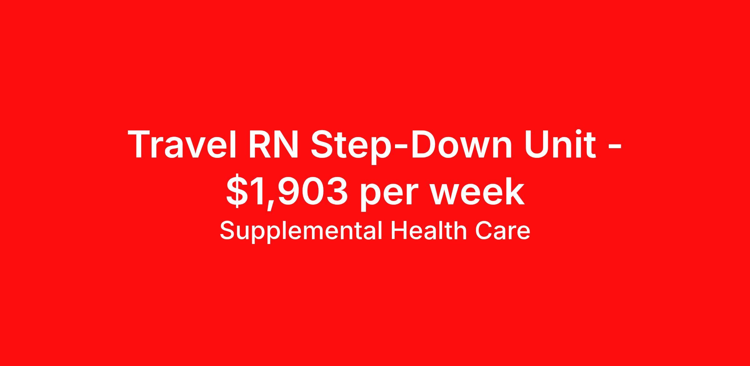 Supplemental Health Care is seeking a travel nurse RN PCU - Progressive Care Unit for a travel nursing job in Fort Smith, Arkansas. Job Description & Requirements Specialty: PCU - Progressive Care Unit Discipline: RN Start Date: ASAP Duration: 13 weeks 36 hours per week Shift: 12 hours, nights Employment Type: Travel Job Description: Supplemental Health Care is hiring Step Down RNs for contract assignments at partnering hospitals in Fort Smith, Arkansas. Whether you’re looking to travel or stay local, we’re committed to helping Step Down Registered Nurses find the right fit with top hospitals across the country. With more than 40 years of experience in healthcare staffing, Supplemental Health Care offers reliable support, competitive pay, and great benefits every step of the way. Qualifications: Current Arkansas Nursing License American Heart Association BLS ACLS 1-2 years of recent Step Down nursing experience EKG Course CCRN preferred Step Down RN Contract Details: $1,728 - $1,903 per week* NOC shift available 13-week contract with possibility to extend Review Data to track a patient's heart rate, blood pressure, breathing, and other vitals Administer and record prescribed medications Report adverse reactions to medications or treatments *Estimated weekly payment may include both taxable wages and tax-free reimbursements for meals, housing, and incidentals. Please speak with a recruiter for details. Apply today to get started with this Step Down RN contract opportunity, or talk to our team about the full range of Registered Nurse opportunities available. What We Offer: Full medical, dental, vision, life, and even pet insurance! Round the clock support. No matter where you are or what time it is, Supplemental Health Care is standing by. SHC's Share the Care referral program is the most dynamic, profitable referral program in the industry. 401(k) Retirement Savings Program with a wide range of investment options. Discounted and free online access to CEU courses through Supplemental University. Supplemental Health Care is an Equal Opportunity Employer. All candidates, including veterans and those with disabilities, are encouraged to apply. SHC will consider for employment qualified applicants with criminal histories in a manner consistent with the requirements of applicable local, state, or federal law. To learn more, visit www.shccares.com/eeo Supplemental Health Care Job ID 1468759. Pay package is based on 12 hour shifts and 36 hours per week (subject to confirmation) with tax-free stipend amount to be determined. Posted job title: Registered Nurse - Step Down About Supplemental Health Care At Supplemental Health Care, a simple belief in the power of caring guides a unique commitment to world-class service in healthcare staffing. For 40 years, we’ve supported talented professionals pursuing their life calling in hospitals, schools, home health, corrections, behavioral health, and other settings. At SHC, we inspire vital connections and enrich lives and inspire better outcomes. As recipients of the Best in Staffing Awards for both Client and Talent, Supplemental Health Care is proud to be among only 2% of staffing companies singled out for the distinction based on the real feedback of our employees and the clients we serve. SHC has also earned The Joint Commission’s Gold Seal of Approval and is named among the Largest Health Care Staffing companies in the United States by Staffing Industry Analysts. We are also thrilled to recognize our very own SLP, Dr. Kelly Byrd as the American Staffing Association 2024 National Staffing Employee of the Year and Health Care Sector All-Star. We’re honored to connect Dr. Byrd to employment, share her incredible story, and support her family literacy nonprofit. For everyone that we serve, SHC is the place where caring hearts thrive. Benefits Referral bonus Benefits start day 1 401k retirement plan Continuing Education Discount program Health savings account