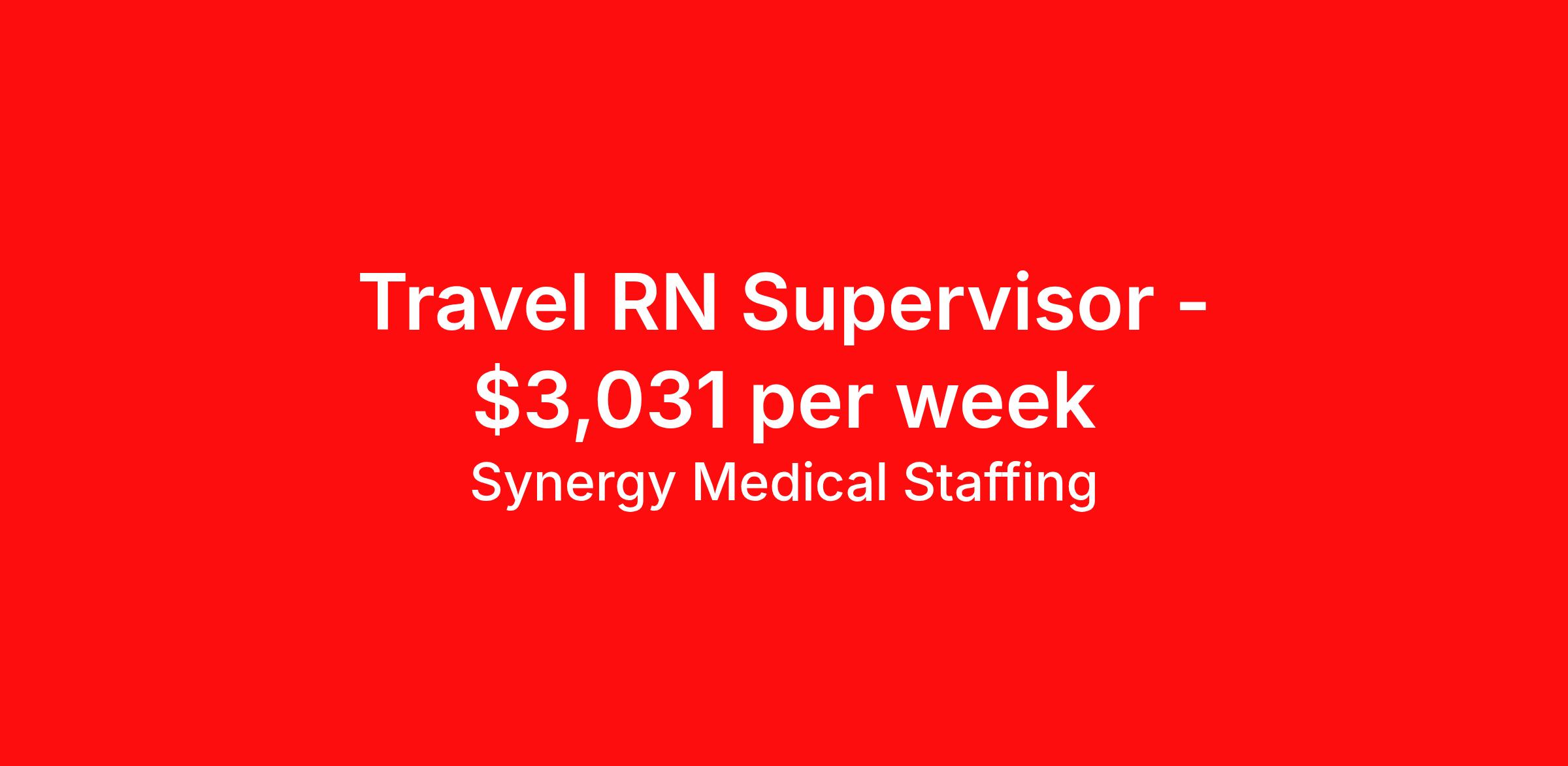 Synergy Medical Staffing is seeking a travel nurse RN House Supervisor for a travel nursing job in Salem, Massachusetts. Job Description & Requirements Specialty: House Supervisor Discipline: RN Start Date: 04/19/2026 Duration: 13 weeks 36 hours per week Shift: 12 hours, days Employment Type: Travel Travel, RN - House Supervisor Location: Salem, Massachusetts Shift: 3x12 Days, 07:00:00-19:00:00, 12.00-3 Duration 13 Weeks When you join Synergy Medical Staffing, you’ll have a dedicated recruiter helping you at all times. Your recruiter is a cross between a career coach and a concierge. They will help you fine-tune your resume, find your next job, and locate an apartment (even one that takes pets!). Make one call and get help with everything from placement to housing to payroll, even travel directions! As a travel, contract and permanent placement medical staffing company with over 20 years of experience in the industry, we understand your needs. Synergy’s Benefits are best in class and include the following: 401K that matches up to 5% of your pay and you are 100% vested from Day 1. Medical, Dental, Vision, Life insurance, Long and short-term disability and others Loyality Program Weekly pay Holiday Pay (varies by Assignment) Guaranteed Hours (varies by Assignment) Referral bonus Continuing Education License and certification reimbursement Synergy Medical Staffing Job ID 36160263. Pay package is based on 12 hour shifts and 36.0 hours per week (subject to confirmation) with tax-free stipend amount to be determined. Posted job title: RN:House Supervisor,07:00:00-19:00:00 About Synergy Medical Staffing When you join Synergy Medical Staffing, you’ll have a dedicated recruiter helping you at all times. Your recruiter is a cross between a career coach and a concierge. They will help you fine-tune your resume, find your next job, and locate an apartment (even one that takes pets!). Make one call and get help with everything from placement to housing to payroll, even travel directions! As a travel, contract and permanent placement medical staffing company with over 12 years of experience in the industry, we understand your needs. Are you interested in traveling, or just a job around the corner? Whatever your preference, you can be sure there are plenty of Nursing Jobs, Allied Jobs and Physical Therapy Jobs, Occupational Therapy Jobs, Speech Therapy Jobs and Rehab Therapy jobs anywhere you want to go. Synergy Medical Staffing professionals have been in the Medical staffing employment and staffing industry for over 12 years, and have developed solid relationships with numerous healthcare facilities nationwide. Contact us now and expand your medical career with new opportunities from Synergy Medical Staffing. Synergy’s Benefits are best in class and include the following 401K Day 1 Full Medical, Dental, Vision, Life insurance, Long and short term disability and others Student Loan Repayment and CEU reimbursement Loyalty bonus after 600 hours Benefits Discount program Weekly pay Holiday Pay Guaranteed Hours Referral bonus Medical benefits Dental benefits Continuing Education License and certification reimbursement Life insurance 401k retirement plan Cancelation protection Vision benefits