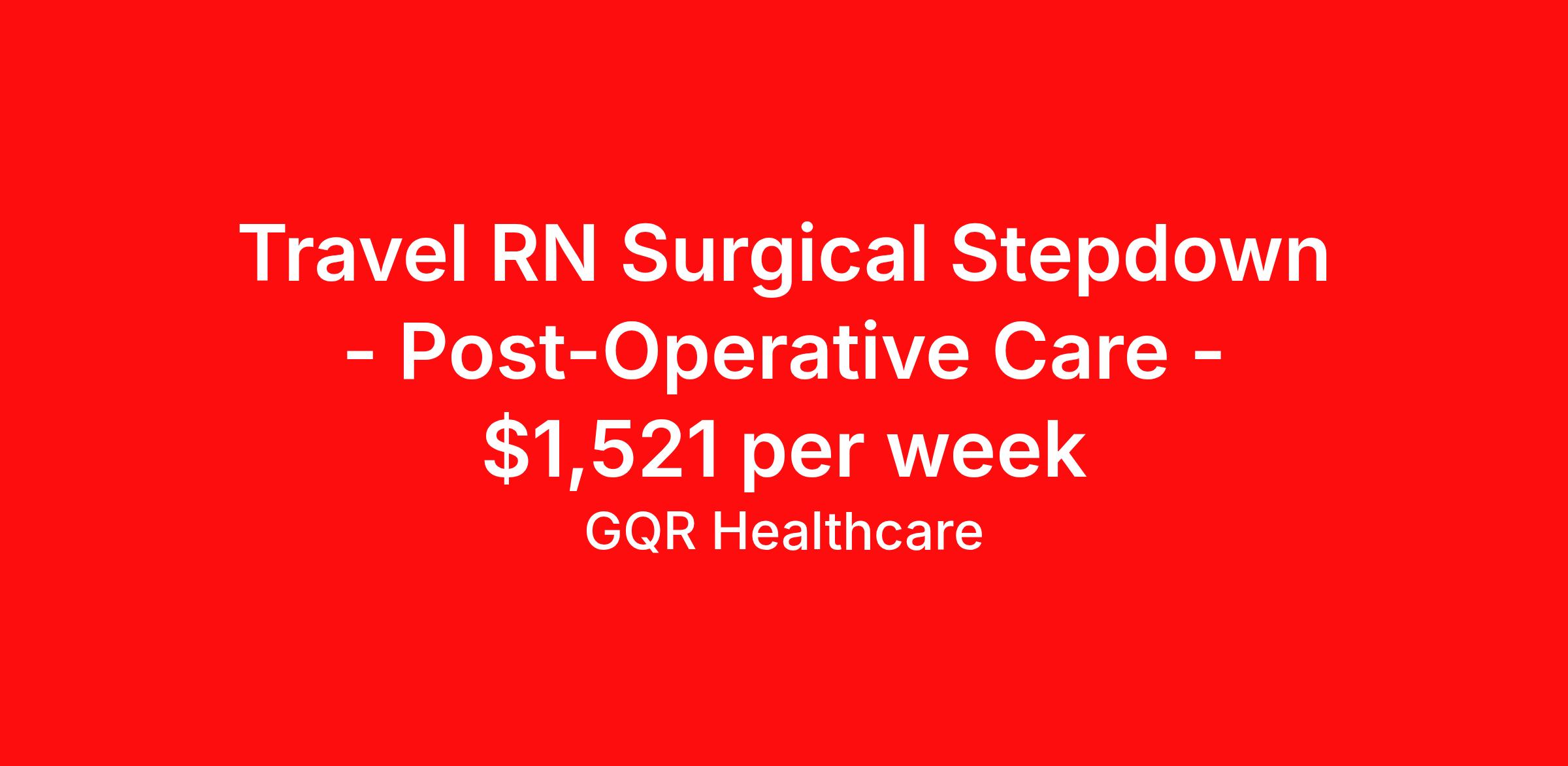 Travel RN Surgical Stepdown - Post-Operative Care - $1,521 per week
