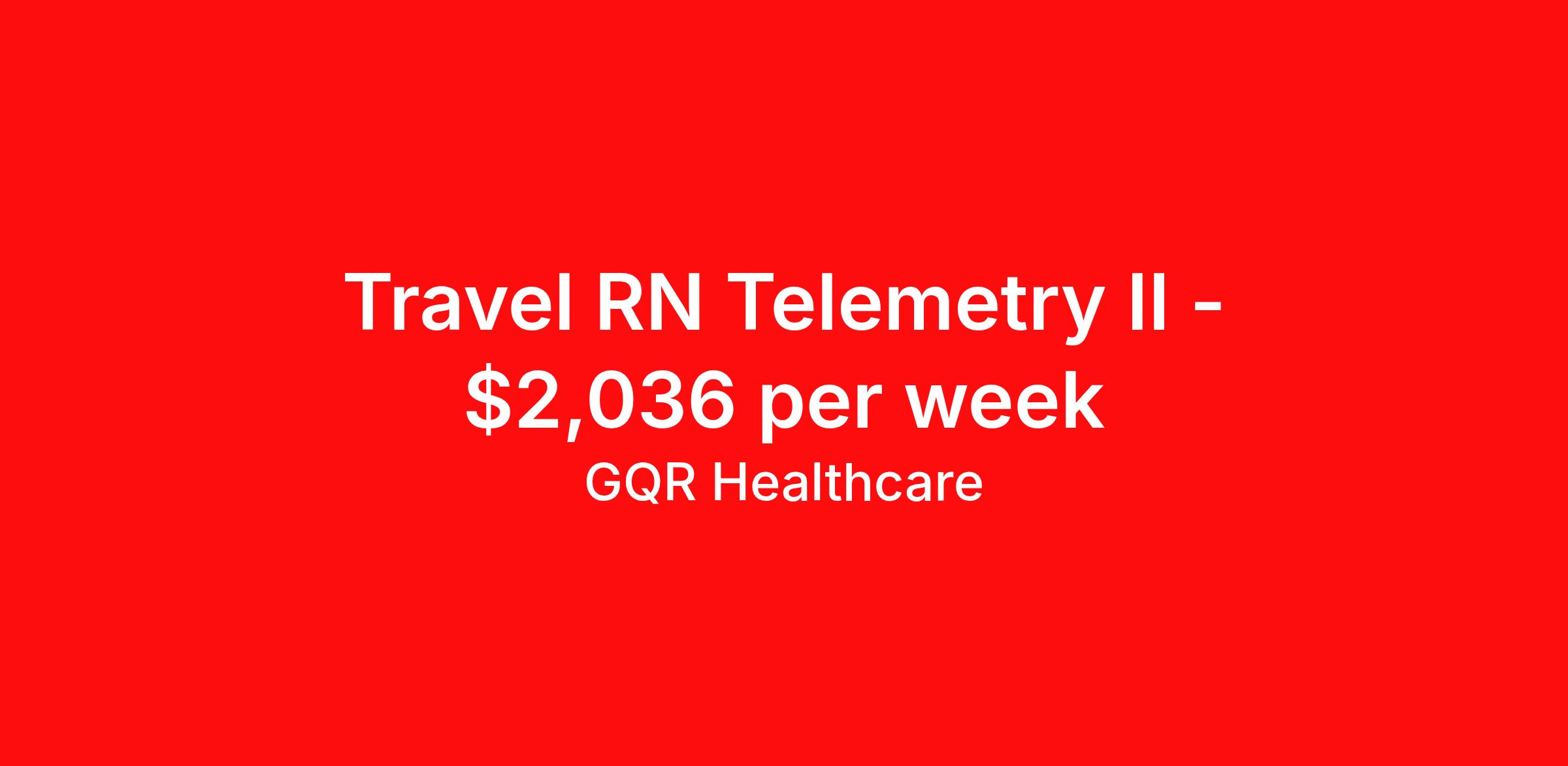 GQR Healthcare is seeking a travel nurse RN Telemetry for a travel nursing job in Prestonsburg, Kentucky. Job Description & Requirements Specialty: Telemetry Discipline: RN Start Date: 03/23/2026 Duration: 13 weeks 36 hours per week Shift: 12 hours, days Employment Type: Travel Contract - W2 Telemetry Registered Nurse (RN) Job Location: Prestonsburg, Kentucky Start Date: March 23, 2026 Profession: Registered Nurse (RN) Facility: Estimated Pay: $2035.84 - $2130.84 Duration:13 weeks Specialty:Telemetry Shift: Day Shift Details: null Day Job Type: Travel *Estimated weekly pay includes projected hourly wages and weekly meal and lodging per diems for eligible clinicians based on nationally published GSA rates. Actual weekly pay and per diems may differ from the amount shown and are subject to change during an assignment. Benefits: Day 1 Insurance Cigna medical, MetLife dental and vision insurance License reimbursement for new licenses needed for each assignment Discounts with hotels and rental cars A dedicated recruiter and support team that will help you every step of the way to sure you start on time and have an exceptional experience Referral bonus up to $700 About the Company: Finding the right role is about more than just matching skills to a job—it’s about aligning with your goals, values, and the way you want to work. As an award-winning talent partner, we support healthcare professionals through every step of that process, offering meaningful opportunities, clear guidance, and long-term partnership. From our first conversation to your first day on the job (and beyond!), we’re here to help you move forward with confidence. GQR Job ID 776863. Pay package is based on 12 hour shifts and 36 hours per week (subject to confirmation) with tax-free stipend amount to be determined. Posted job title: Registered Nurse (RN) About GQR Healthcare GQR’s Healthcare team specializes in connecting experts within the industry to highly skilled healthcare professionals across the US market. In the competitive healthcare market, we recognize that the industry’s common goals of improved quality of care and patient outcomes are wholly reliant upon the professionals directly supporting these initiatives. Leveraging our extensive candidate network, we deliver continuity of care for the communities our partners serve to ensure the patient experience is of the highest quality. Through deep market specialization and a unique approach to talent acquisition, GQR Healthcare provides an unparalleled and personalized experience across all medical specialties in nursing and within diverse healthcare platforms across the industry.