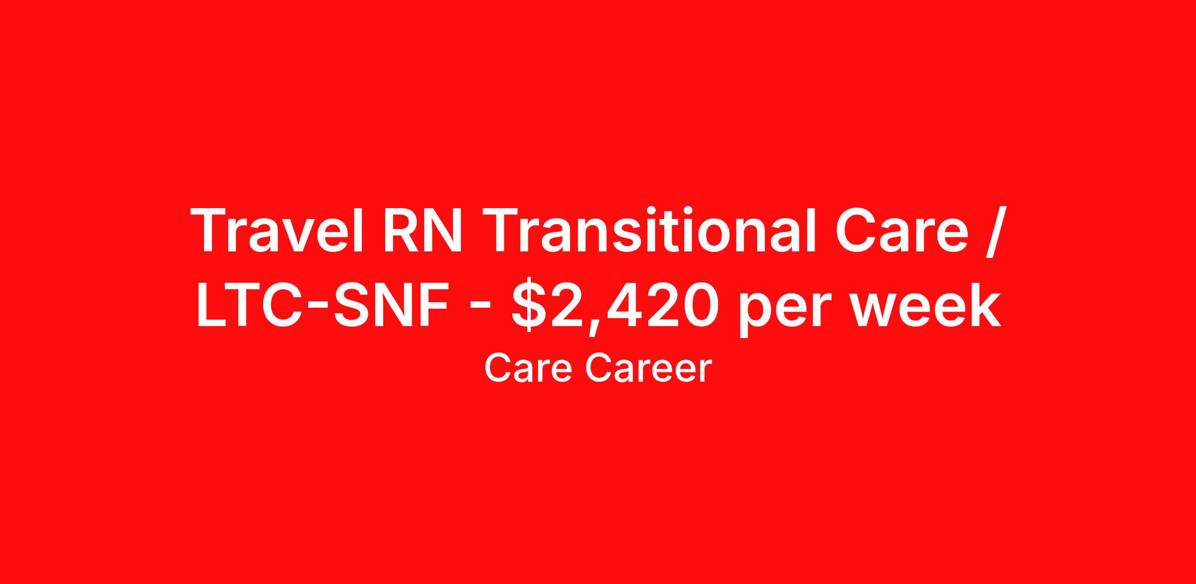 Travel RN Transitional Care / LTC-SNF - $2,420 per week