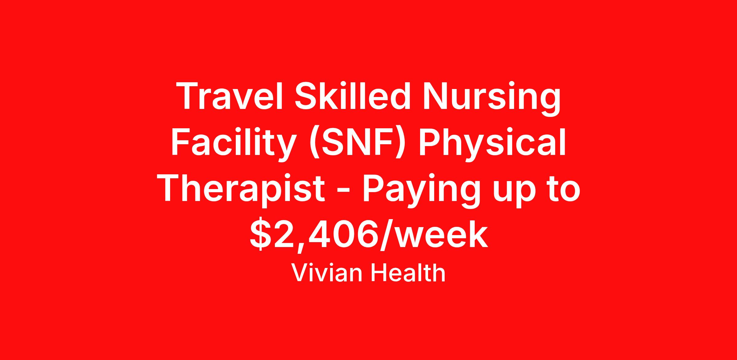 Travel Skilled Nursing Facility (SNF) Physical Therapist - Paying up to $2,406/week