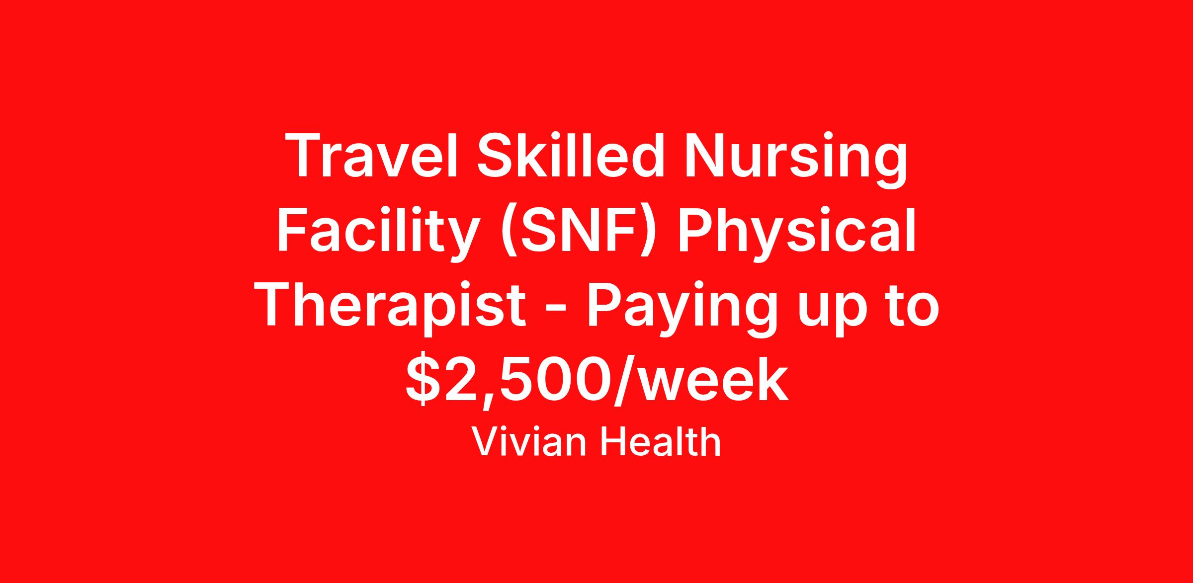 Travel Skilled Nursing Facility (SNF) Physical Therapist - Paying up to $2,500/week