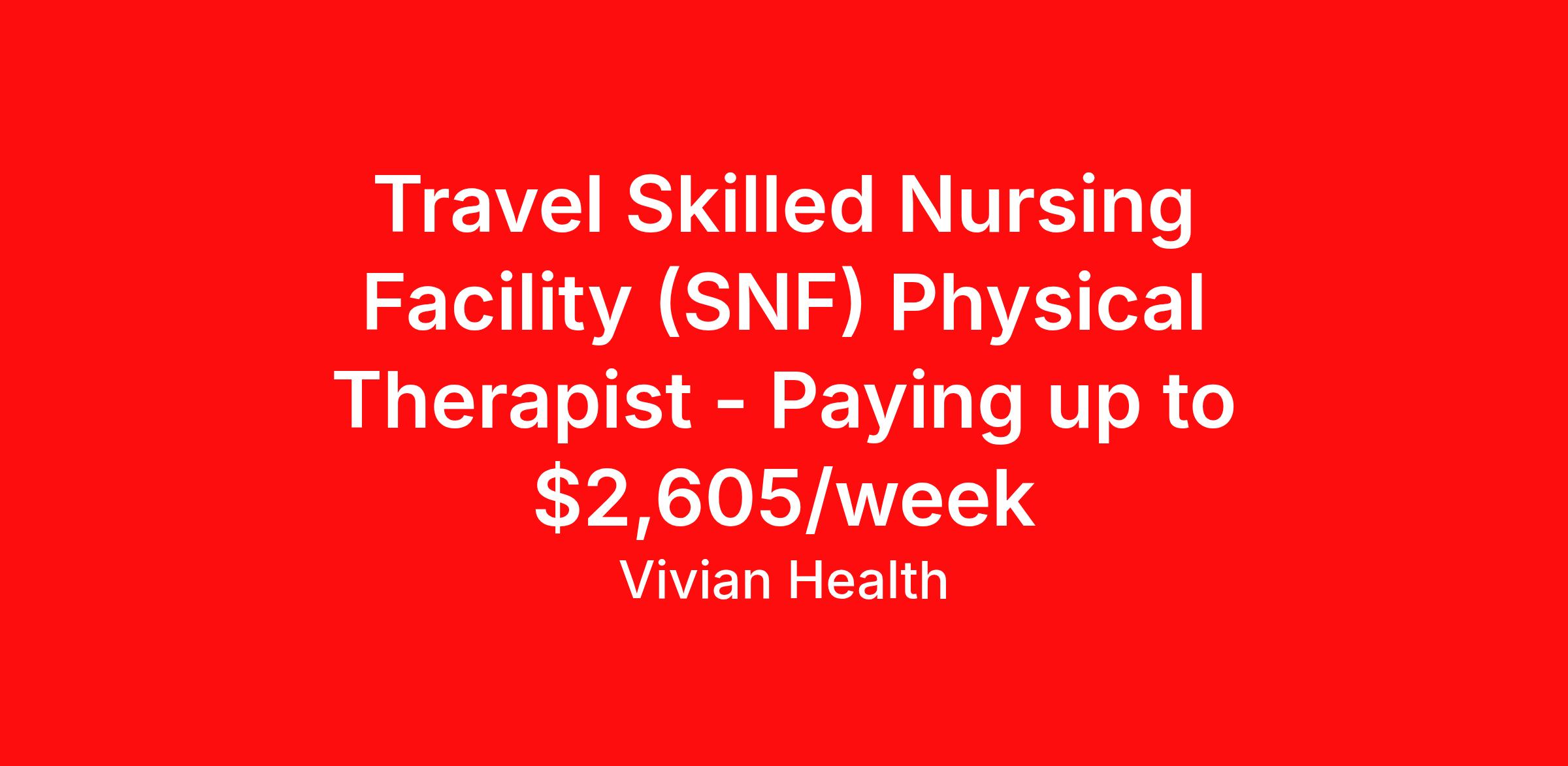 Travel Skilled Nursing Facility (SNF) Physical Therapist - Paying up to $2,605/week