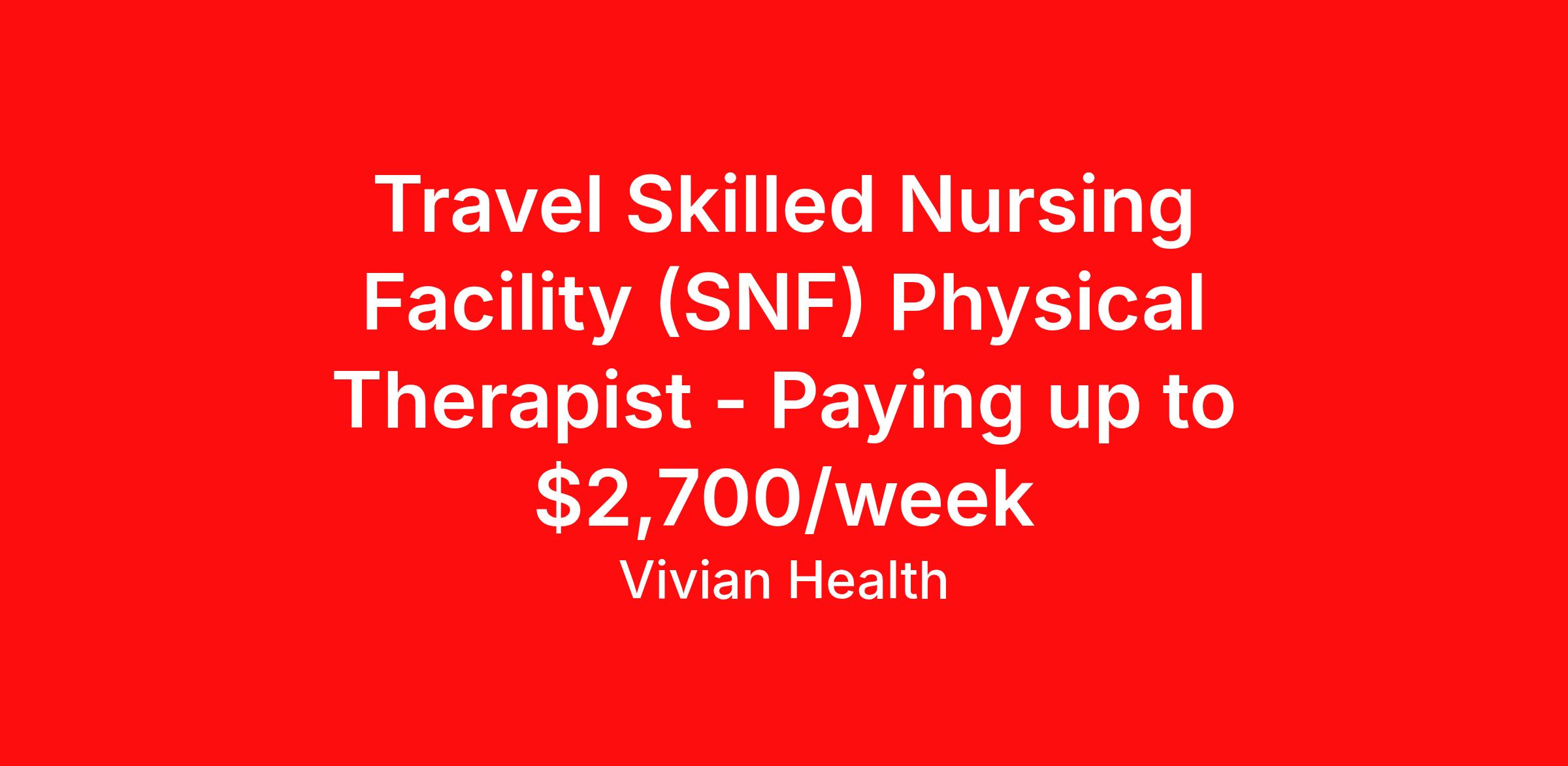 Travel Skilled Nursing Facility (SNF) Physical Therapist - Paying up to $2,700/week