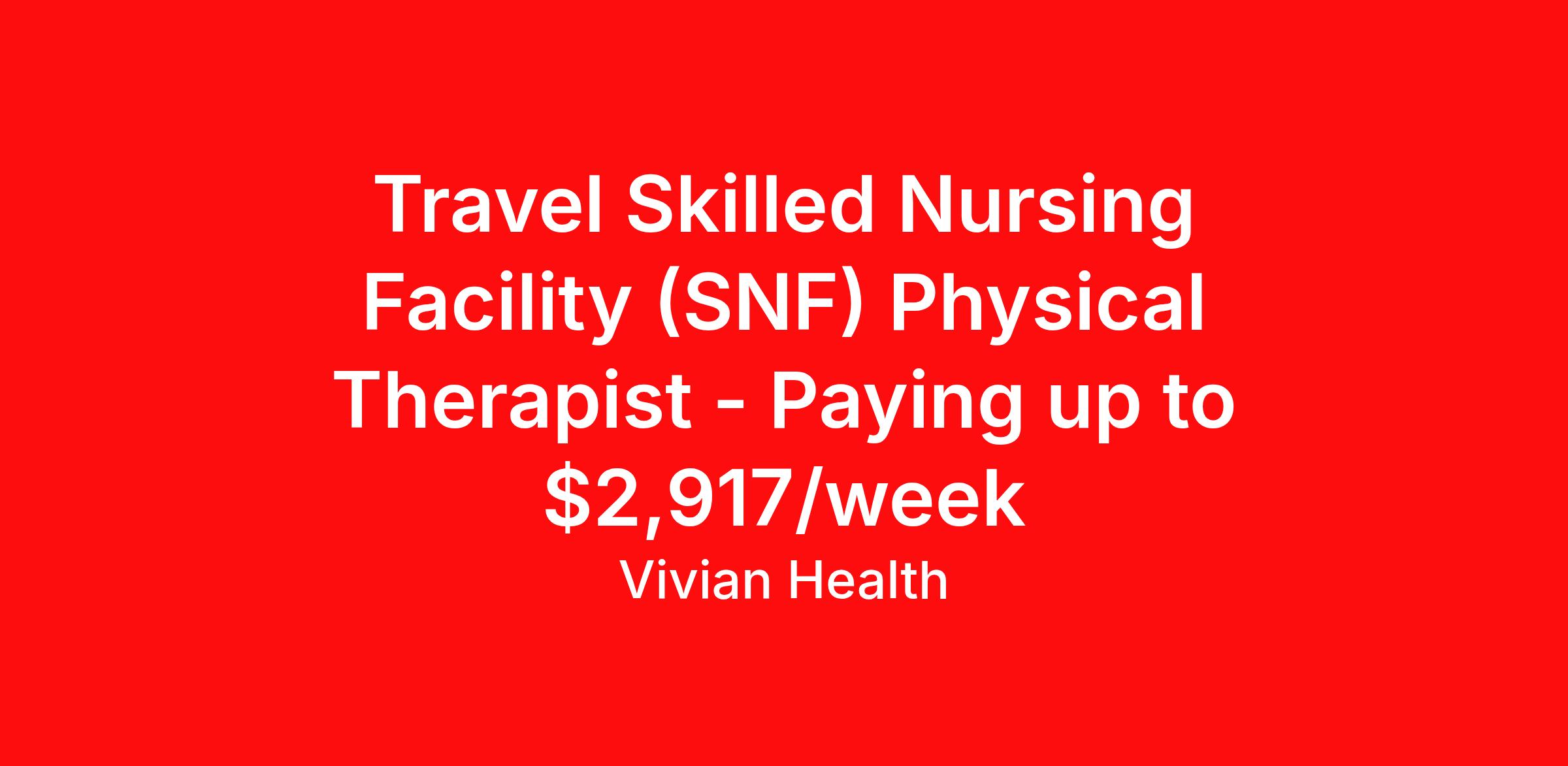 Travel Skilled Nursing Facility (SNF) Physical Therapist - Paying up to $2,917/week