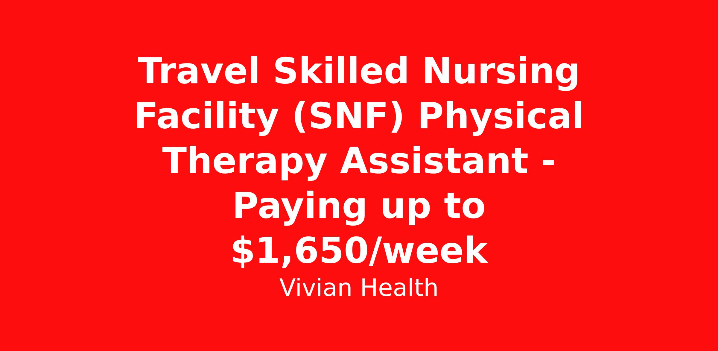 Travel Skilled Nursing Facility (SNF) Physical Therapy Assistant - Paying up to $1,650/week