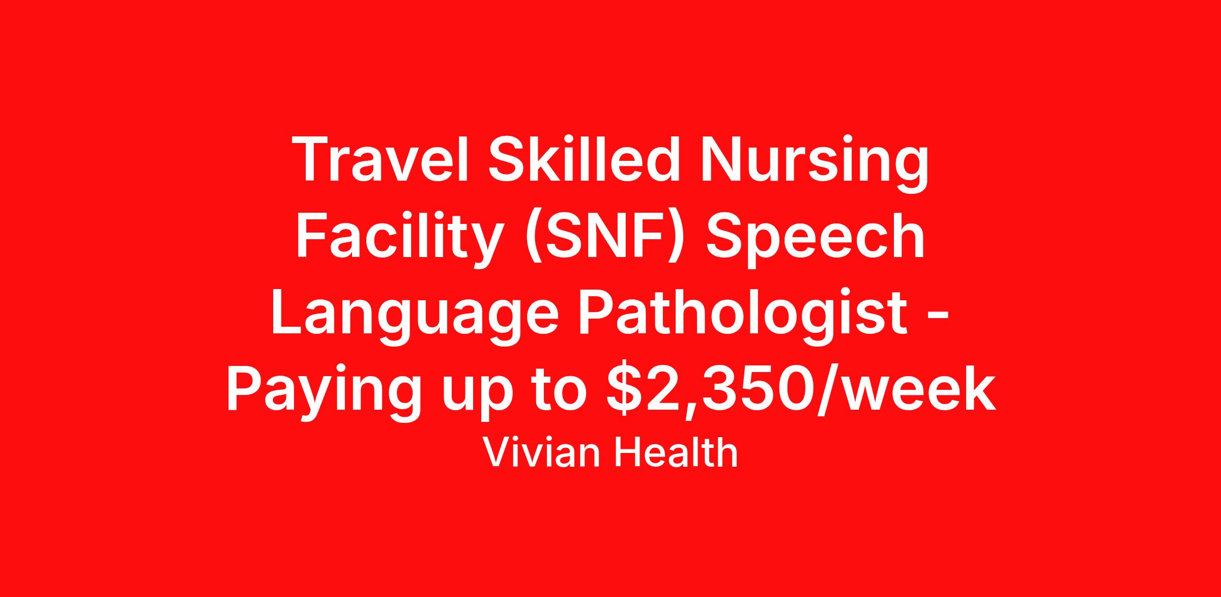 Travel Skilled Nursing Facility (SNF) Speech Language Pathologist - Paying up to $2,350/week