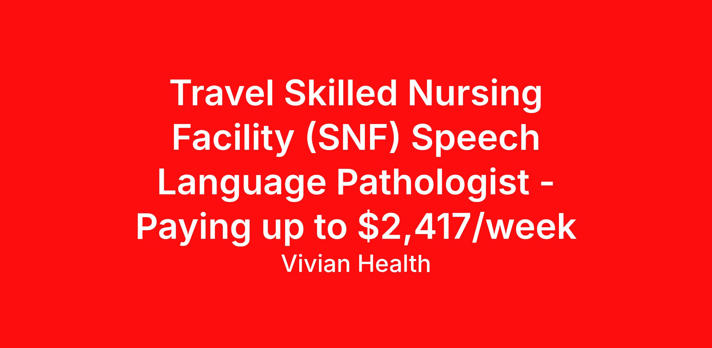 Travel Skilled Nursing Facility (SNF) Speech Language Pathologist - Paying up to $2,417/week