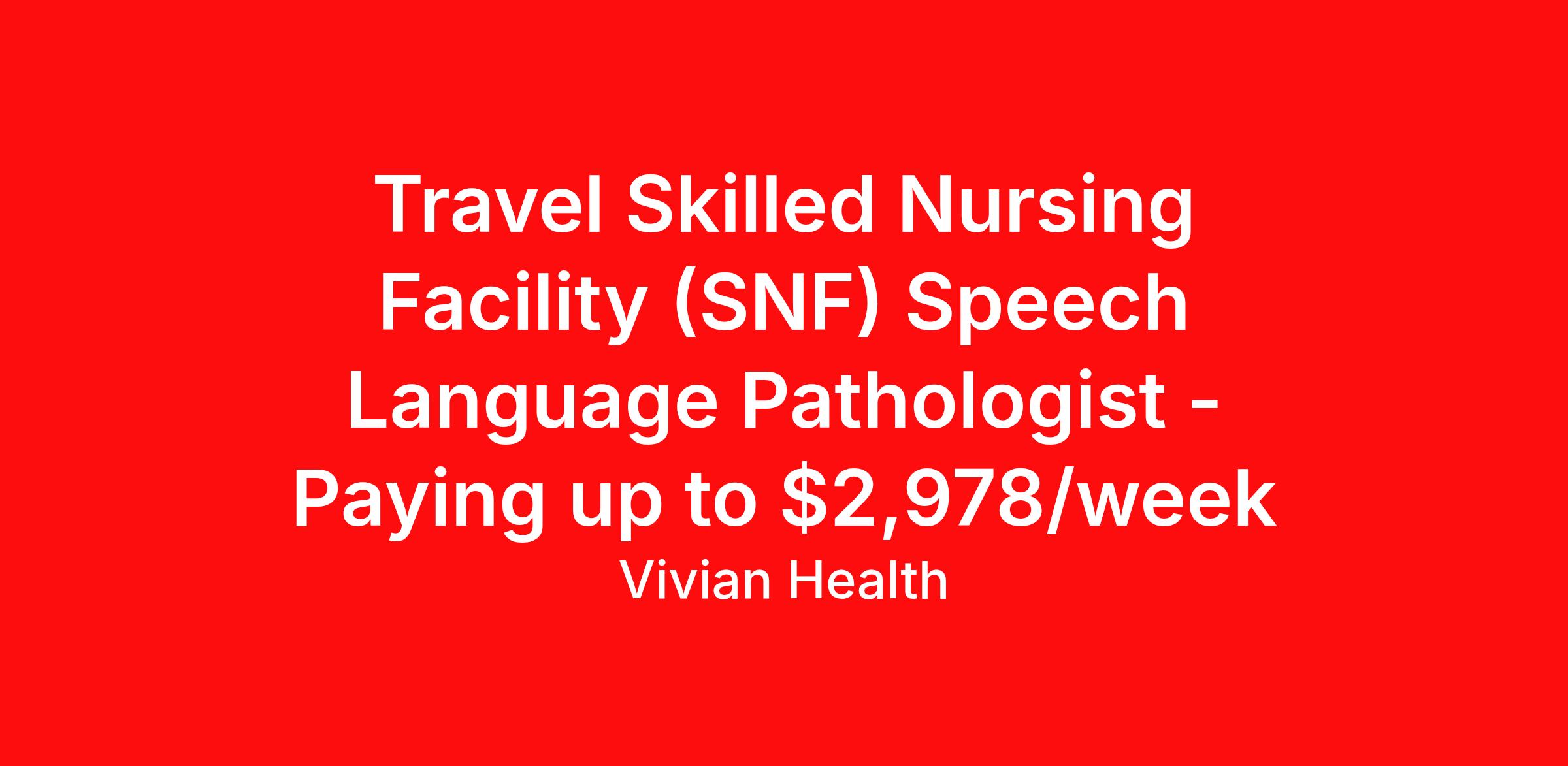 Travel Skilled Nursing Facility (SNF) Speech Language Pathologist - Paying up to $2,978/week