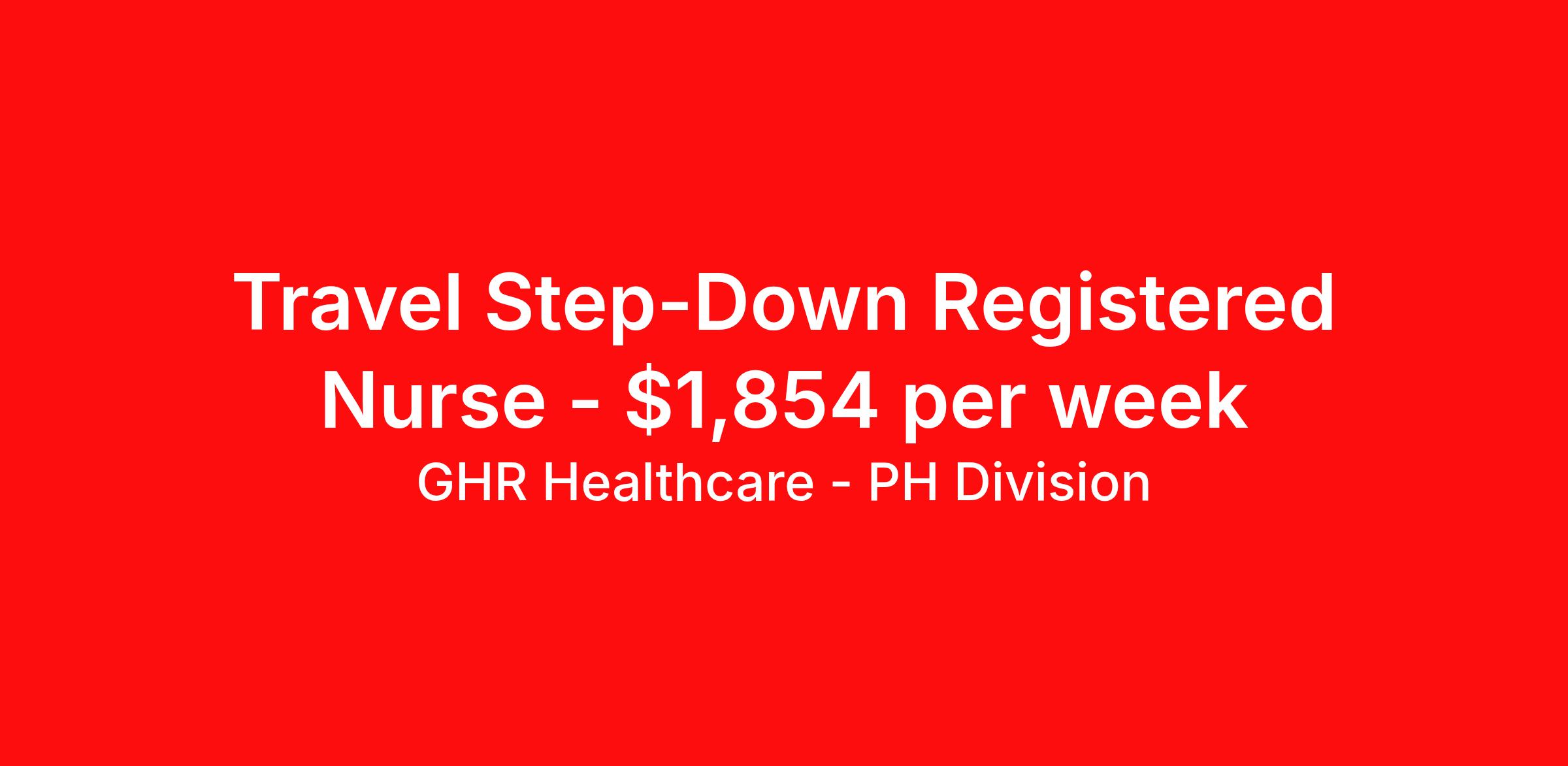 GHR Healthcare - PH Division is seeking a travel nurse RN Stepdown for a travel nursing job in Pocatello, Idaho. Job Description & Requirements Specialty: Stepdown Discipline: RN Start Date: 04/13/2026 Duration: 13 weeks 36 hours per week Shift: 12 hours Employment Type: Travel Planet Healthcare Job ID 76428058. Pay package is based on 12 hour shifts and 36 hours per week (subject to confirmation) with tax-free stipend amount to be determined. About GHR Healthcare - PH Division For over 30 years, GHR Healthcare has been the bridge between healthcare professionals and the facilities that need them nationwide. We're committed to uncovering your ideal fit, supported by GHR's dedication to competitive compensation, transparent communication, and a devoted team that genuinely cares about your career journey. You can trust us to stand by your side as your advocate, confidante, and partner in advancing your career. At GHR, care and consideration are at the heart of everything we do. Visit ghrhealthcare.com to learn more.