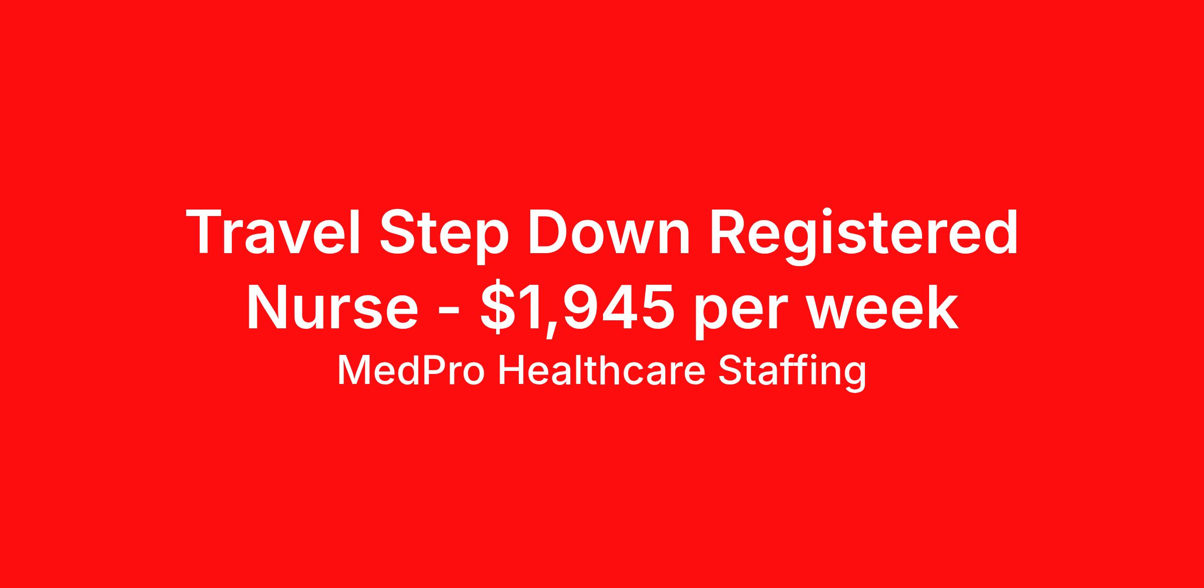 MedPro Healthcare Staffing is seeking a travel nurse RN PCU - Progressive Care Unit for a travel nursing job in Leawood, Kansas. Job Description & Requirements Specialty: PCU - Progressive Care Unit Discipline: RN Start Date: 04/20/2026 Duration: 13 weeks 36 hours per week Shift: 12 hours, nights Employment Type: Travel MedPro Healthcare Staffing , a Joint Commission-certified staffing agency, is seeking a quality Step Down Registered Nurse for a travel assignment with one of our top healthcare clients. Requirements Active RN License. Degree from accredited nursing program. BLS Certifications. Eighteen months of recent experience in an Acute Care PACU setting. Other requirements to be determined by our client facility Benefits Weekly pay and direct deposit Full coverage of all credentialing fees Private housing or housing allowance Group Health insurance for you and your family Company-paid life and disability insurance Travel reimbursement 401(k) matching Unlimited Referral Bonuses up to $1,000 Duties Responsibilities Assesses patient needs, signs and symptoms indicating physiologic and psychosocial changes in the patient's condition Utilizes the nursing process to assess, plan, implement and evaluate patient care. Collects, analyzes, and interprets data and information from health care members and documents actual and/or potential nursing diagnoses. Documents the patient's plan of care using identified nursing diagnoses, expected patient outcomes, and selected nursing interventions. Initiates and evaluates patient and/or family education. Revises and documents the plan of care according to evaluation, changes in medical plan of care, and effective/ineffective nursing interventions. About Agency MedPro Healthcare Staffing is a Joint Commission certified provider of contract staffing services. Since 1983, we have placed nursing and allied travelers in top healthcare facilities nationwide. Join us today for your very own MedPro Experience®. If qualified and interested, please call for immediate consideration. MedPro Staffing is an Equal Opportunity Employer. All applicants will be considered for employment without attention to race, color, religion, national origin, age, sex, disability, marital status or veteran status. Key Words: Registered Nurse, RN, Step-Down, Contract Nurse, Travel Nurse, Agency RN, Travel RN, Per Diem, Nursing, Contract, Travel Nursing *Weekly payment estimates are intended for informational purposes only and include a gross estimate of hourly wages and reimbursements for meal, incidental, and housing expenses. Your recruiter will confirm your eligibility and provide additional details. MedPro Job ID a0Fcx00000FGoD9EAL. Pay package is based on 12 hour shifts and 36 hours per week (subject to confirmation) with tax-free stipend amount to be determined. Posted job title: Step Down Registered Nurse Nursing: Step-Down / Transitional Care. About MedPro Healthcare Staffing At MedPro Healthcare Staffing , we believe no one cares more for caregivers than we do. Our mission is simple: you focus on your patients, and we’ll take care of the rest. As a Joint Commission-certified leader in temporary and contract healthcare staffing since 1983, MedPro has proudly connected nursing and allied travelers with top healthcare facilities across the nation. With thousands of job opportunities available nationwide, we make it easy to find assignments that align with your goals and lifestyle. Our on-staff clinical support team—alongside a compassionate group of experienced recruiters—provides hands-on guidance every step of the way. From Day 1 medical benefits and a 401(k) plan to personalized career support, we’re committed to ensuring every professional we serve feels valued, cared for, and empowered to succeed. Guided by a CEO who is a Registered Nurse, MedPro is built on a foundation of clinical insight and genuine compassion for the caregiving community. Through The MedPro Experience® , we deliver travel assignments that are rewarding, memorable, and designed to help you DREAM big, EXPLORE often, and ACHIEVE greatness. Benefits Day 1 medical, dental, and vision benefits for you and your family Weekly pay and direct deposit Unlimited Referral Bonuses starting at $500 On Staff Clinical Support Team Access to nationwide travel assignments MPX Mobile app -24/7 real-time access to jobs, credentials, assignment details, and more Full coverage of all credentialing fees Private housing or housing allowance Tax Free Per Diems, Housing Stipends and Travel Reimbursements Company-paid life and disability insurance Travel reimbursement 401(k) matching Benefits Weekly pay Referral bonus Employee assistance programs