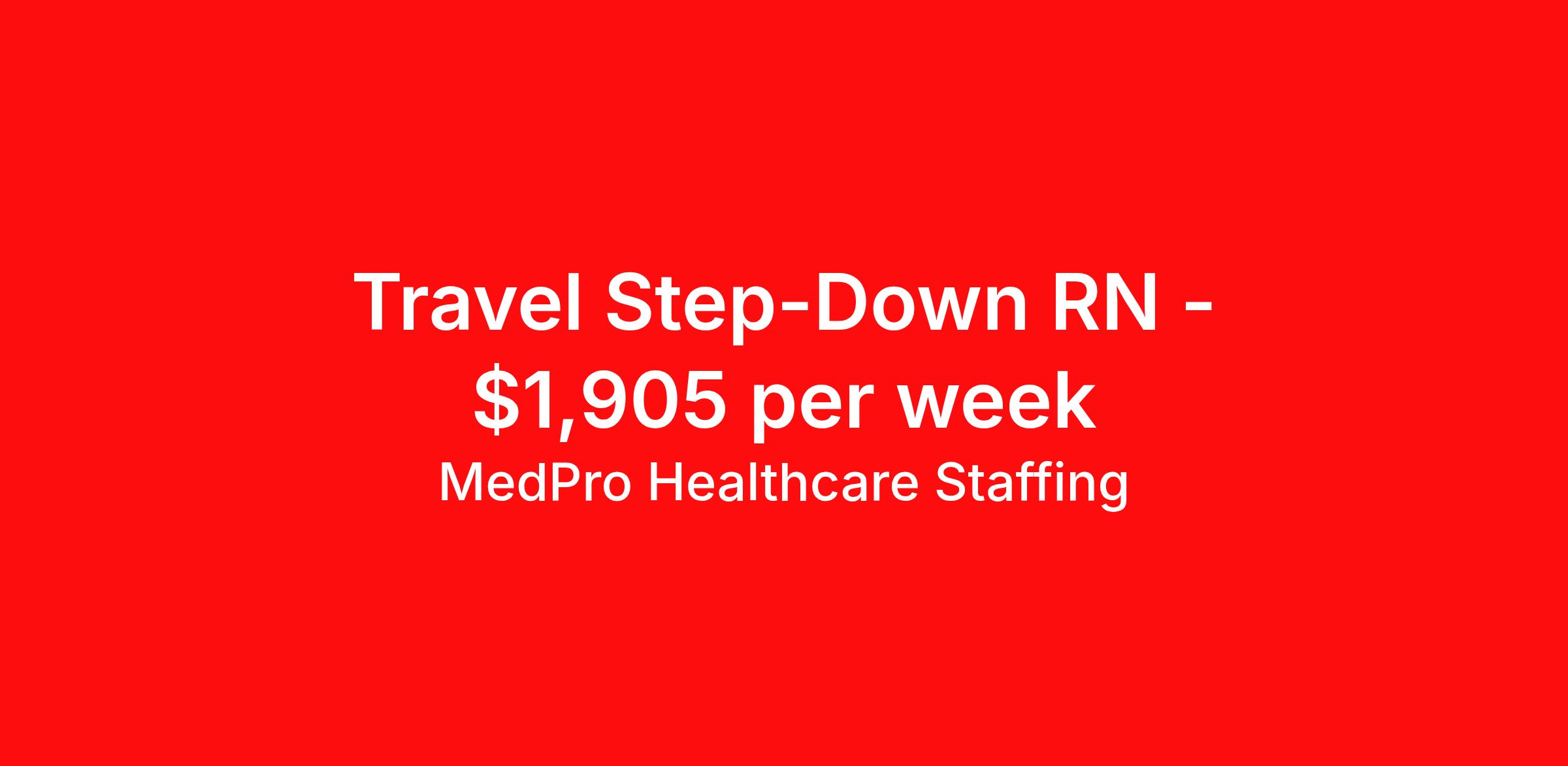 MedPro Healthcare Staffing is seeking a travel nurse RN PCU - Progressive Care Unit for a travel nursing job in Evansville, Indiana. Job Description & Requirements Specialty: PCU - Progressive Care Unit Discipline: RN Start Date: 04/06/2026 Duration: 13 weeks 36 hours per week Shift: 12 hours, nights Employment Type: Travel MedPro Healthcare Staffing , a Joint Commission-certified staffing agency, is seeking a quality Step Down Registered Nurse for a travel assignment with one of our top healthcare clients. Requirements Active RN License. Degree from accredited nursing program. BLS Certifications. Eighteen months of recent experience in an Acute Care PACU setting. Other requirements to be determined by our client facility Benefits Weekly pay and direct deposit Full coverage of all credentialing fees Private housing or housing allowance Group Health insurance for you and your family Company-paid life and disability insurance Travel reimbursement 401(k) matching Unlimited Referral Bonuses up to $1,000 Duties Responsibilities Assesses patient needs, signs and symptoms indicating physiologic and psychosocial changes in the patient's condition Utilizes the nursing process to assess, plan, implement and evaluate patient care. Collects, analyzes, and interprets data and information from health care members and documents actual and/or potential nursing diagnoses. Documents the patient's plan of care using identified nursing diagnoses, expected patient outcomes, and selected nursing interventions. Initiates and evaluates patient and/or family education. Revises and documents the plan of care according to evaluation, changes in medical plan of care, and effective/ineffective nursing interventions. About Agency MedPro Healthcare Staffing is a Joint Commission certified provider of contract staffing services. Since 1983, we have placed nursing and allied travelers in top healthcare facilities nationwide. Join us today for your very own MedPro Experience®. If qualified and interested, please call for immediate consideration. MedPro Staffing is an Equal Opportunity Employer. All applicants will be considered for employment without attention to race, color, religion, national origin, age, sex, disability, marital status or veteran status. Key Words: Registered Nurse, RN, Step-Down, Contract Nurse, Travel Nurse, Agency RN, Travel RN, Per Diem, Nursing, Contract, Travel Nursing *Weekly payment estimates are intended for informational purposes only and include a gross estimate of hourly wages and reimbursements for meal, incidental, and housing expenses. Your recruiter will confirm your eligibility and provide additional details. MedPro Job ID a0Fcx00000EFHriEAH. Pay package is based on 12 hour shifts and 36 hours per week (subject to confirmation) with tax-free stipend amount to be determined. Posted job title: Step Down Registered Nurse Nursing: Step-Down / Transitional Care. About MedPro Healthcare Staffing At MedPro Healthcare Staffing , we believe no one cares more for caregivers than we do. Our mission is simple: you focus on your patients, and we’ll take care of the rest. As a Joint Commission-certified leader in temporary and contract healthcare staffing since 1983, MedPro has proudly connected nursing and allied travelers with top healthcare facilities across the nation. With thousands of job opportunities available nationwide, we make it easy to find assignments that align with your goals and lifestyle. Our on-staff clinical support team—alongside a compassionate group of experienced recruiters—provides hands-on guidance every step of the way. From Day 1 medical benefits and a 401(k) plan to personalized career support, we’re committed to ensuring every professional we serve feels valued, cared for, and empowered to succeed. Guided by a CEO who is a Registered Nurse, MedPro is built on a foundation of clinical insight and genuine compassion for the caregiving community. Through The MedPro Experience® , we deliver travel assignments that are rewarding, memorable, and designed to help you DREAM big, EXPLORE often, and ACHIEVE greatness. Benefits Day 1 medical, dental, and vision benefits for you and your family Weekly pay and direct deposit Unlimited Referral Bonuses starting at $500 On Staff Clinical Support Team Access to nationwide travel assignments MPX Mobile app -24/7 real-time access to jobs, credentials, assignment details, and more Full coverage of all credentialing fees Private housing or housing allowance Tax Free Per Diems, Housing Stipends and Travel Reimbursements Company-paid life and disability insurance Travel reimbursement 401(k) matching Benefits Weekly pay Referral bonus Employee assistance programs