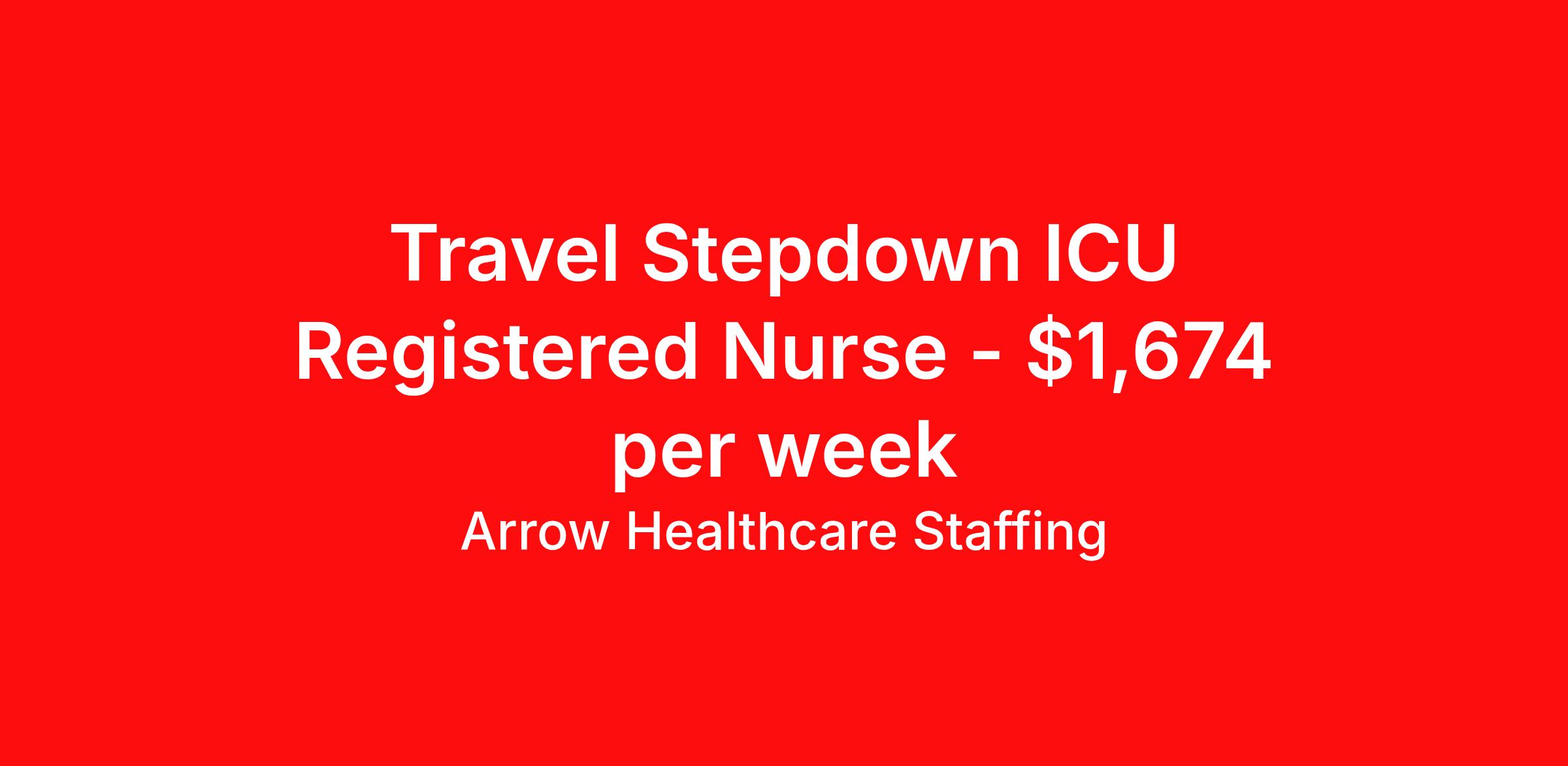 Arrow Healthcare Staffing is seeking a travel nurse RN PCU - Progressive Care Unit for a travel nursing job in Orangeburg, South Carolina. Job Description & Requirements Specialty: PCU - Progressive Care Unit Discipline: RN Start Date: 04/21/2026 Duration: 13 weeks 36 hours per week Shift: 12 hours, days Employment Type: Travel Arrow Healthcare Staffing Job ID 17989781. Pay package is based on 12 hour shifts and 36.0 hours per week (subject to confirmation) with tax-free stipend amount to be determined. Posted job title: RN - PCU/IMC/Stepdown RN PCU/IMC/Stepdown About Arrow Healthcare Staffing Arrow Healthcare Staffing is a Midwest based travel nursing and allied health recruiting firm. We specialize in local/ travel nursing, medical laboratory, pharmacy, radiology/imaging, therapy, and executive/leadership recruitment. We offer direct hospital contracts and all of the top benefits in the marketplace today. Benefits Medical benefits Vision benefits Weekly pay Benefits start day 1 Holiday Pay 401k retirement plan Dental benefits License and certification reimbursement Guaranteed Hours Continuing Education Cancelation protection Mileage reimbursement Referral bonus