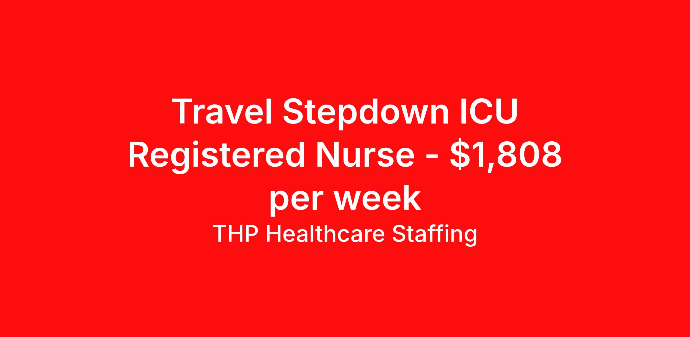 THP Healthcare Staffing is seeking a travel nurse RN PCU - Progressive Care Unit for a travel nursing job in Orangeburg, South Carolina. Job Description & Requirements Specialty: PCU - Progressive Care Unit Discipline: RN Start Date: 04/21/2026 Duration: 13 weeks 36 hours per week Shift: 12 hours, days Employment Type: Travel Our Client is currently seeking RN - Stepdown positions in Orangeburg, SC for a 3x12 Days shift. You must have current State Licensure and at least 1 year of recent experience. Requirements Current Resume State Licensure Current BLS and/or ACLS and/or Specialty Certifications 2 Current Clinical References Physical (Within 12 Months) TB Skin Test (Within 12 Months) Titers - MMR/Hep B/Varicella Respiratory Fit Test (Within 12 Months) Current - Tdap/Flu Vaccinations Must be able to pass pre-employment, background and urine drug screening Compensation and Benefits Compettive Pay Packages Health Benefit Package Travel pay - 1st pay check Extending Contract Bonus Refer a friend and earn extra cash! At THP Healthcare Staffing, we take care of you - work with us, not for us! THP Healthcare Staffing Job ID 17989936. Pay package is based on 12 hour shifts and 36.0 hours per week (subject to confirmation) with tax-free stipend amount to be determined. Posted job title: RN:Stepdown,07:00:00-19:00:00 About THP Healthcare Staffing At THP Staffing, we specialize in connecting healthcare facilities with highly skilled travel nurses and allied health professionals who bring exceptional care and expertise wherever they go. Our mission is to ensure that every healthcare provider has access to top nursing talent, regardless of location, to deliver superior patient outcomes. Benefits Weekly pay Life insurance Pet insurance License and certification reimbursement Medical benefits Employee assistance programs Referral bonus Vision benefits Holiday Pay Health savings account