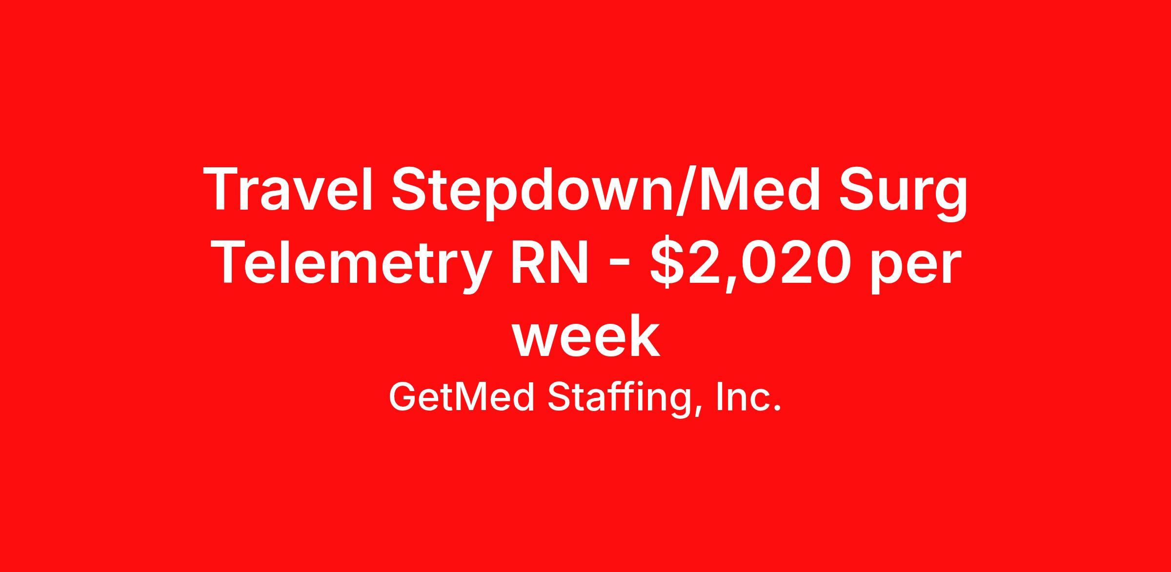 GetMed Staffing, Inc. is seeking a travel nurse RN Telemetry for a travel nursing job in Muscatine, Iowa. Job Description & Requirements Specialty: Telemetry Discipline: RN Start Date: 04/06/2026 Duration: 13 weeks 36 hours per week Shift: 12 hours, nights Employment Type: Travel GetMed Staffing is searching for a strong Telemetry RN to assist our traveler-friendly client. A minimum of 1-2 years of experience is required. Traveling with GetMed Staffing offers the unique opportunity to gain diverse experiences, both personally and professionally. Gain experience that matters. GetMed Staffing, Inc. Job ID 36157624. Pay package is based on 12 hour shifts and 36.0 hours per week (subject to confirmation) with tax-free stipend amount to be determined. Posted job title: RN:Telemetry,19:00:00-07:00:00 About GetMed Staffing, Inc. We are a diversity owned company, specializing in healthcare recruiting services. We truly understand how important a healthcare travelers' relationship is with their recruiter, as well as our relationship is with our healthcare facilities. We recognize that the needs of our healthcare travelers can vary, and therefore we provide the personalized touch necessary to ensure a successful travel assignment each and every time. Our healthcare facilities and clients benefit from us putting our healthcare travelers first. GetMed Staffing is excited to be a leader within the industry by focusing on providing healthcare travelers with more choices and possibilities as they plan for their next healthcare travel assignment. Benefits Life insurance Medical benefits Dental benefits Vision benefits 401k retirement plan