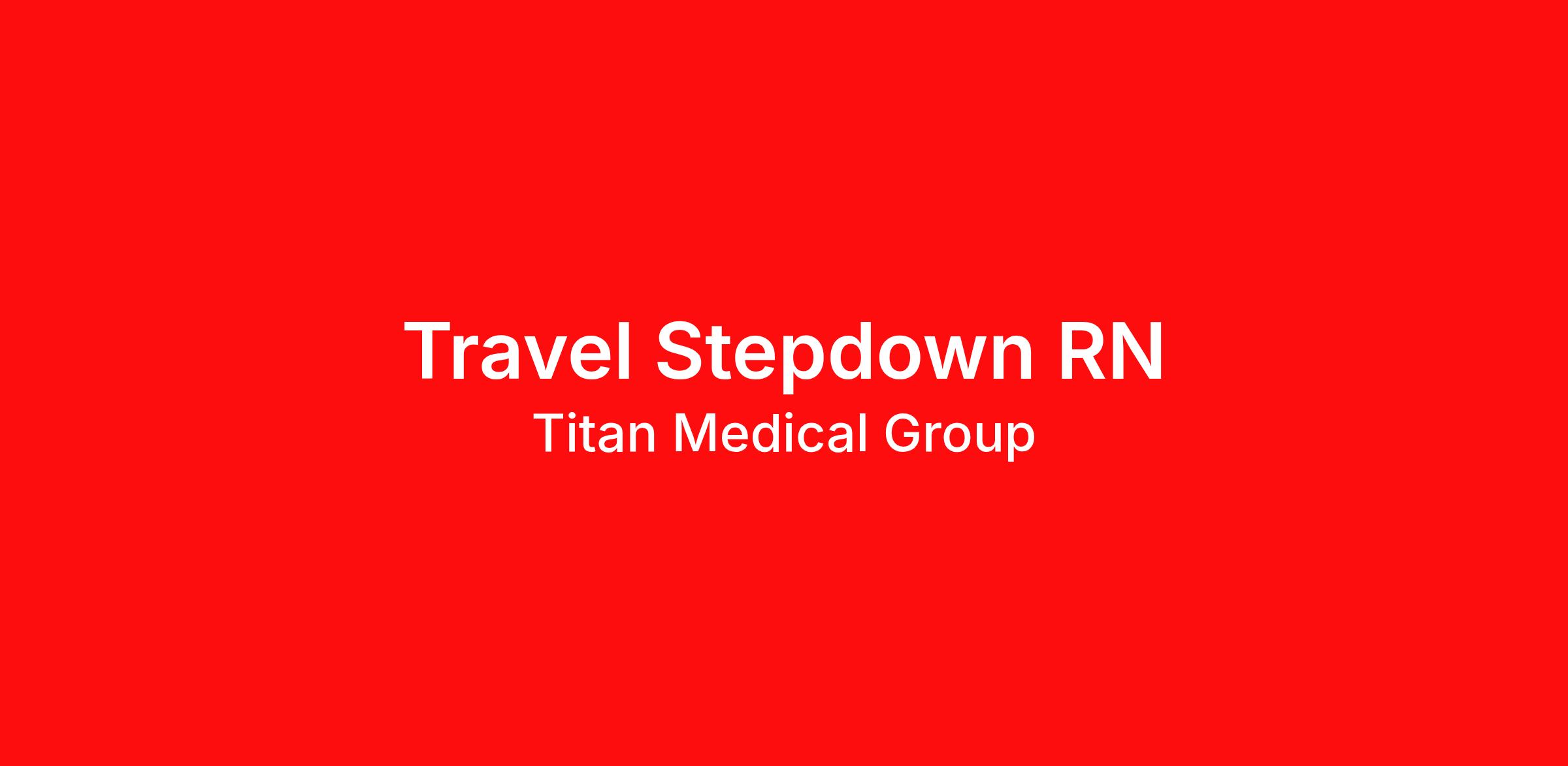 “WHEN YOU WORK FOR US, WE WORK FOR YOU.” Travel Stepdown RN Weekly Gross Pay: $1850.00 - $2050.00 Location: Winchester, KY, United States Start date: 4/13/2026 Assignment length: 13 Weeks Minimum years of relevant experience in healthcare: 2 years Job type: Traveler Shift: Night (3x12) Certifications: ACLS/BCLS/BLS Position Highlights 13-week travel contract Competitive weekly pay package Work with an experienced clinical and recruiting team Quick start options available (inquire for details) Titan Medical is looking for travelers to fill a Travel Stepdown position for a 13-week assignment in Winchester, KY! Call Titan for additional details. (866) 332-9600 Benefits Day-one medical, dental & vision insurance Loyalty bonus after 2,080 hours Life and short-term disability 401(k) with employer match Referral bonus up to $1,500 24/7 recruiter support Licensure and CEU reimbursement Experienced clinical team available to support you throughout your assignment Titan Medical App available on the Apple Store & Google Play Why Travel with Titan Medical Titan Medical provides access to thousands of travel nursing and allied health jobs nationwide. Your dedicated recruiter will help you: Build a strong traveler profile by improving your résumé and showcasing your skills Increase your chances of landing the assignment you want Travel with a top healthcare staffing company in the industry Ready to apply or want more information? Call (866) 332-9600 to connect with Titan Medical today!