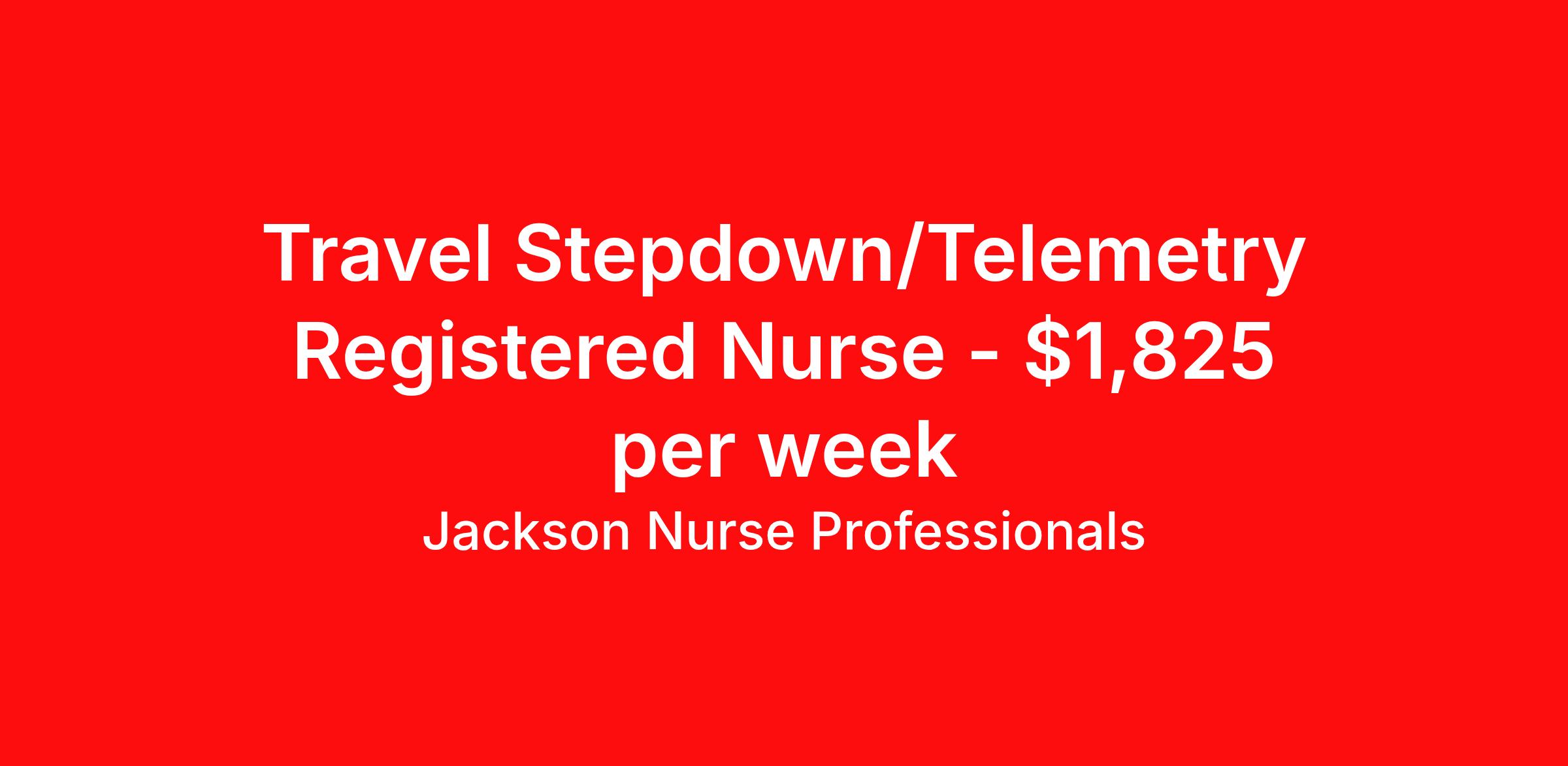 Jackson Nurse Professionals is seeking a travel nurse RN Stepdown for a travel nursing job in Morgantown, West Virginia. Job Description & Requirements Specialty: Stepdown Discipline: RN Start Date: 04/06/2026 Duration: 13 weeks 36 hours per week Shift: 12 hours, nights Employment Type: Travel At Jackson Nurse Professionals , we are dedicated to supporting travel nurses and helping you build a fulfilling nursing career. Whether you’re looking for your first or next travel nursing assignment, we specialize in connecting healthcare professionals with leading medical facilities. With a focus on personalized service and a wide range of opportunities, we make it easier than ever for nurses to find the right balance of adventure and professional growth. Qualifications: 2 years of recent experience in area of specialty listed on job Current BLS required (certifications vary by location – job may require ACLS) Valid license and/or certification in state of practice Valid Driver's License Background and drug screen Benefits: Full Medical, Dental and Vision Insurance 401(k) with Employer Match 24/7/365 Support from your Recruiter available by text, phone, or email Referral Bonus Program: Give $200, Get $500 for every referral Same Day Immediate Pay Access Certification & Licensure Reimbursement Apply today to experience the Jackson Nurse Professionals difference! Jackson Nurse Professionals Job ID 2476023. Pay package is based on 12 hour shifts and 36 hours per week (subject to confirmation) with tax-free stipend amount to be determined. About Jackson Nurse Professionals Filling critical needs in patient care, Jackson Nurse Professionals delivers cost-effective travel nurse staffing solutions to over 500 hospitals, outpatient clinics, and home health clients nationwide. Awarded Best of Staffing - Talent and Client 2024, and rated as a Top Workplace 2023 by the Orlando Sentinel, Jackson Nurse Professionals goes the extra mile to provide travel nurses the career they deserve, while providing clients with a large range of highly skilled nurses to fill short, long-term, and temporary assignments. As a member of Jackson Healthcare’s family of award-winning staffing companies, we’re part of a growing community that’s impacting 10 million patients nationwide. Join our mission to improve the delivery of patient care, and the lives of everyone we touch.