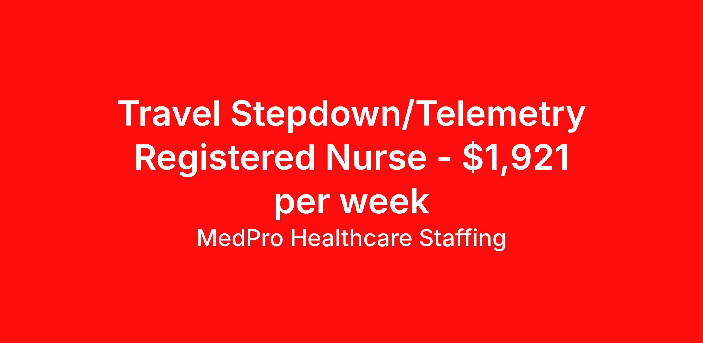 MedPro Healthcare Staffing is seeking a travel nurse RN Stepdown for a travel nursing job in Morgantown, West Virginia. Job Description & Requirements Specialty: Stepdown Discipline: RN Start Date: 04/06/2026 Duration: 13 weeks 36 hours per week Shift: 12 hours, nights Employment Type: Travel MedPro Healthcare Staffing , a Joint Commission-certified staffing agency, is seeking a quality Med-Surg registered nurse (RN) for a travel assignment with one of our top healthcare clients. Requirements Active RN License Degree from accredited nursing program BLS Certifications Eighteen months of recent experience in an Acute Care Med/Surg setting Other requirements to be determined by our client facility Benefits Weekly pay and direct deposit Full coverage of all credentialing fees Private housing or housing allowance Group Health insurance for you and your family Company-paid life and disability insurance Travel reimbursement 401(k) matching Unlimited Referral Bonuses up to $1,000 Duties Responsibilities Med-Surg Nurses (RN) provide care for primarily adult patients before and after surgical procedures; they also attend to those who are being treated with pharmaceuticals to manage illness. Due to the broad range of medical conditions Med/Surg Nurses will encounter, they must be well-versed in a large variety of health conditions. Complete assignments made by physicians. Provide routine treatment and post-surgical care. Assess changes in patient's health status and perform various treatments. Administer medication. Meticulous documentation as to medication and treatment administration to ensure continuity of care between nursing staff, physicians and other treatment team members. About Agency MedPro Healthcare Staffing is a Joint Commission certified provider of contract staffing services. Since 1983, we have placed nursing and allied travelers in top healthcare facilities nationwide. Join us today for your very own MedPro Experience®. If qualified and interested, please call for immediate consideration. MedPro Staffing is an Equal Opportunity Employer. All applicants will be considered for employment without attention to race, color, religion, national origin, age, sex, disability, marital status or veteran status. Key Words: Registered Nurse, RN, Medical-Surgical, Travel Nurse, Contract Nurse, Agency Nurse, Agency RN, RN-MS, RN- Medical Surgical, Travel RN, Contract, Nursing, RN Med-Surg, Travel Nursing *Weekly payment estimates are intended for informational purposes only and include a gross estimate of hourly wages and reimbursements for meal, incidental, and housing expenses. Your recruiter will confirm your eligibility and provide additional details. MedPro Job ID a0Fcx00000HkuLZEAZ. Pay package is based on 12 hour shifts and 36 hours per week (subject to confirmation) with tax-free stipend amount to be determined. Posted job title: Med-Surg Registered Nurse Nursing: Medical Surgical. About MedPro Healthcare Staffing At MedPro Healthcare Staffing , we believe no one cares more for caregivers than we do. Our mission is simple: you focus on your patients, and we’ll take care of the rest. As a Joint Commission-certified leader in temporary and contract healthcare staffing since 1983, MedPro has proudly connected nursing and allied travelers with top healthcare facilities across the nation. With thousands of job opportunities available nationwide, we make it easy to find assignments that align with your goals and lifestyle. Our on-staff clinical support team—alongside a compassionate group of experienced recruiters—provides hands-on guidance every step of the way. From Day 1 medical benefits and a 401(k) plan to personalized career support, we’re committed to ensuring every professional we serve feels valued, cared for, and empowered to succeed. Guided by a CEO who is a Registered Nurse, MedPro is built on a foundation of clinical insight and genuine compassion for the caregiving community. Through The MedPro Experience® , we deliver travel assignments that are rewarding, memorable, and designed to help you DREAM big, EXPLORE often, and ACHIEVE greatness. Benefits Day 1 medical, dental, and vision benefits for you and your family Weekly pay and direct deposit Unlimited Referral Bonuses starting at $500 On Staff Clinical Support Team Access to nationwide travel assignments MPX Mobile app -24/7 real-time access to jobs, credentials, assignment details, and more Full coverage of all credentialing fees Private housing or housing allowance Tax Free Per Diems, Housing Stipends and Travel Reimbursements Company-paid life and disability insurance Travel reimbursement 401(k) matching Benefits Weekly pay Referral bonus Employee assistance programs