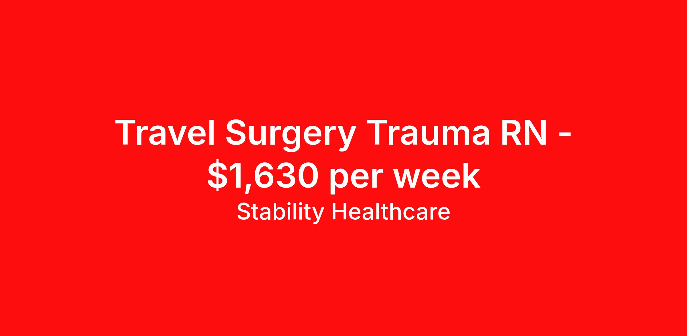 Stability Healthcare is seeking a travel nurse RN Trauma for a travel nursing job in Atlanta, Georgia. Job Description & Requirements Specialty: Trauma Discipline: RN Duration: 8 weeks 36 hours per week Shift: 12 hours, nights Employment Type: Travel Stability Healthcare is looking for a Med-Surg RN contract position in Atlanta, GA. The majority of hospitalized patients are admitted to M/S either directly or after surgery. M/S is also where patients who have been in critical care (ICU) are transferred when they no longer need critical care but still require nursing care. *$600 travel bonus *Day 1 health insurance with United Healthcare *PTO plan start accruing on day 1, use during contract or cash out at the end! *Guaranteed stipend if facility calls you off *Extra hour bonus earn an additional hourly bonus for working over your weekly contracted hours Stability Job ID 828569. Pay package is based on 12 hour shifts and 36 hours per week (subject to confirmation) with tax-free stipend amount to be determined. Posted job title: Med-Surg About Stability Healthcare Stability Healthcare was founded in 2009, with the mission of becoming the best Travel Nursing Agency in California. We have been rated one of the top travel nursing agencies and offer our nurses the highest paying travel nursing jobs available. We have access to the best travel assignments from 1000’s of facilities. You can start the year off in sunny California, spend the Spring in the Colorado Rockies, enjoy the Summer in the Mid-West, experience the change of seasons in Boston and New York, and hit the beaches of Florida in the winter. Our Nurses work in the best hospitals and health systems in the country. Benefits Guaranteed Hours Benefits start day 1